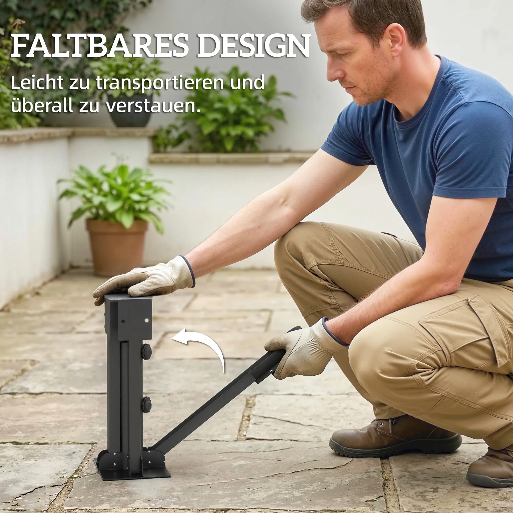 Wil je voorgoed afscheid nemen van wiebelende parasols en onhandige parasolstandaards? De opvouwbare [BRAND NAME] parasolstandaard is de perfecte oplossing! Deze parasolstandaard biedt een stabiele, weerbestendige stalen basis, is compact opvouwbaar en eenvoudig op te bergen. Met de meegeleverde adapter passen stangen van 38 mm en 48 mm veilig in deze standaard. Ideaal voor op het balkon of in de tuin, zodat je zorgeloos van de zomerdagen kunt genieten.