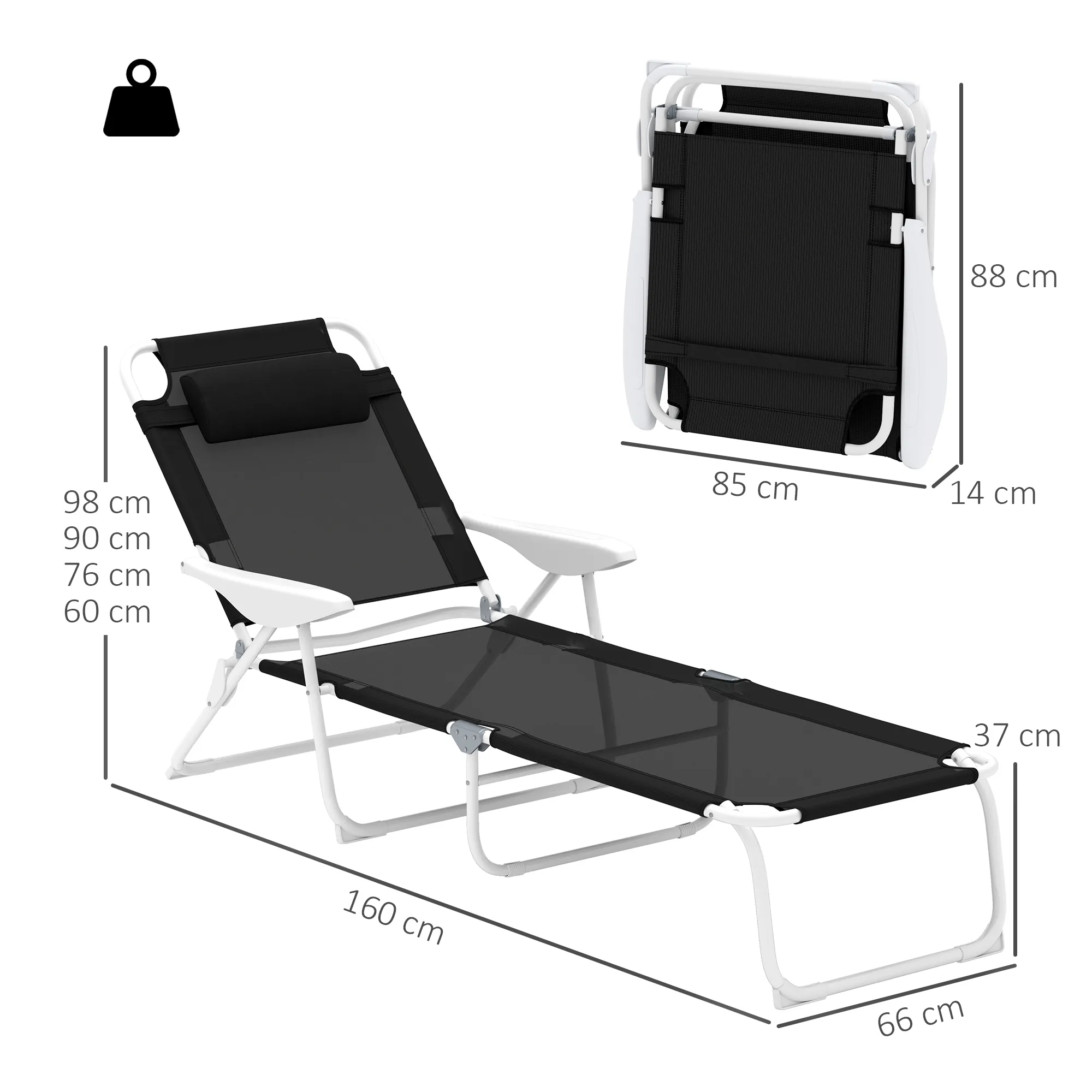- Totale afmetingen: 160L x 66B x 98H cm