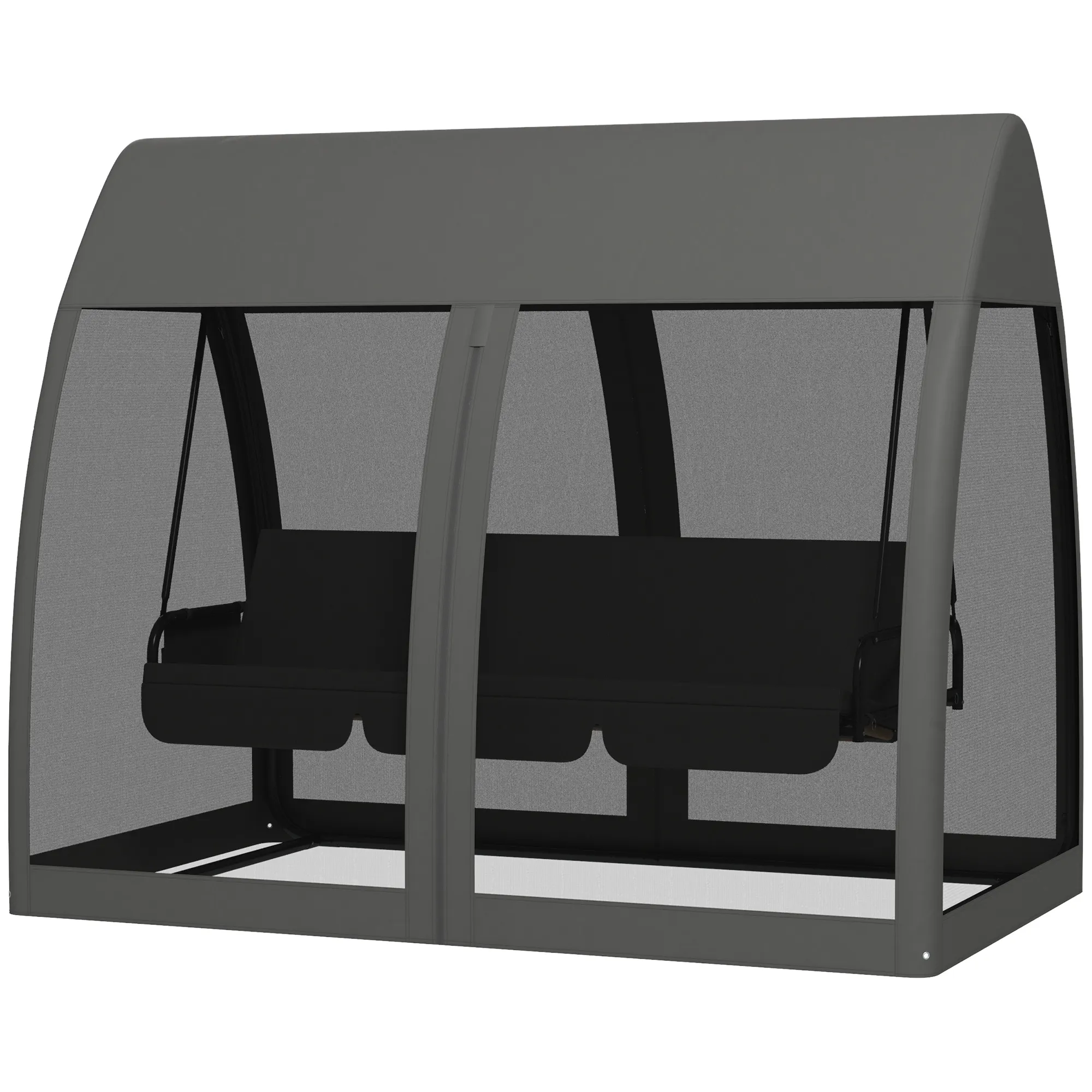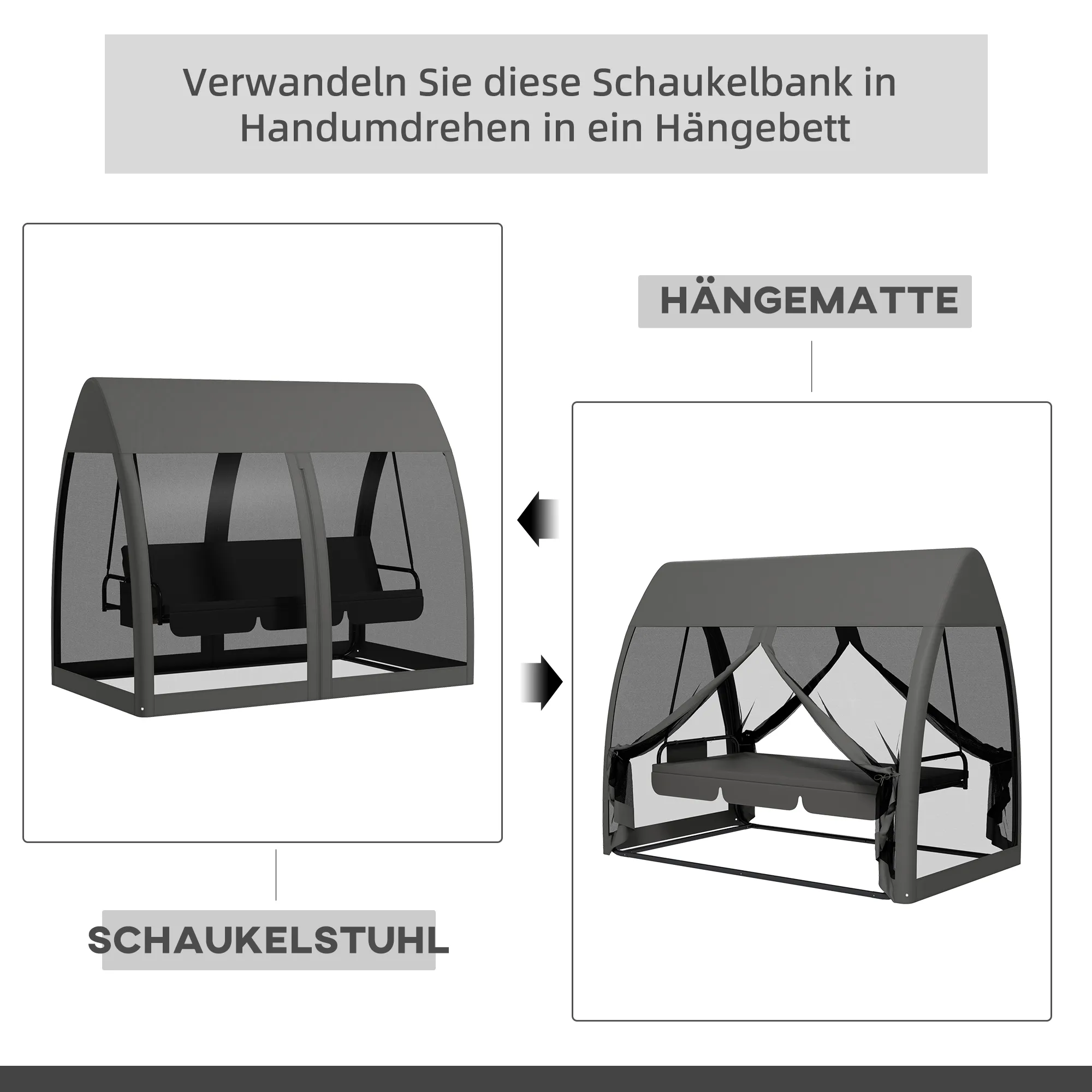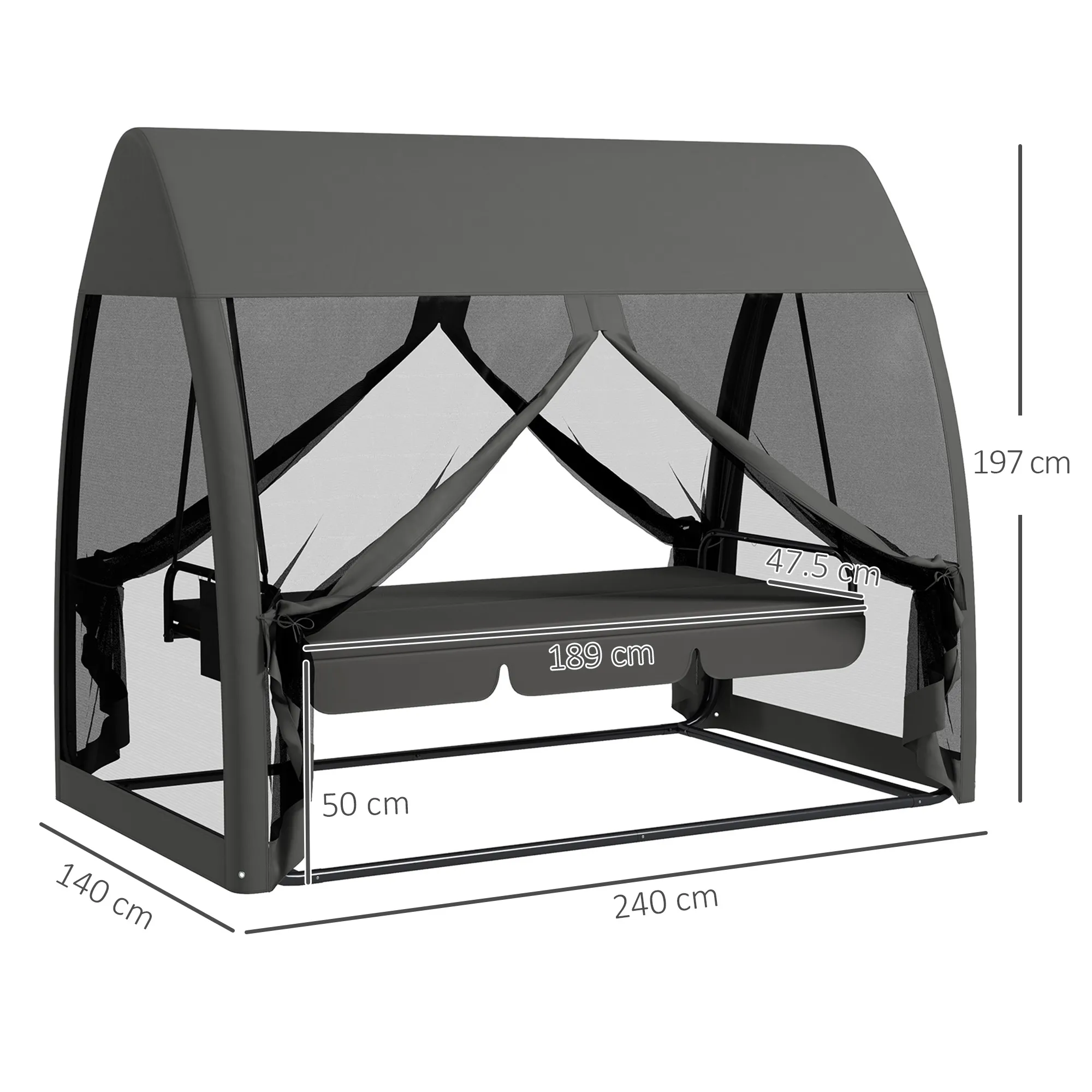 Outsuuny 2 In 1 Hollywoodschommel Met Ligfunctie 3-zits Tuinschommel Met Baldakijn, Muggennet, Schommelbank Belast Tot 300kg, Tuinligstoel Voor Tuin, Terras, 240 X 140 X 197 Cm, Grijs
