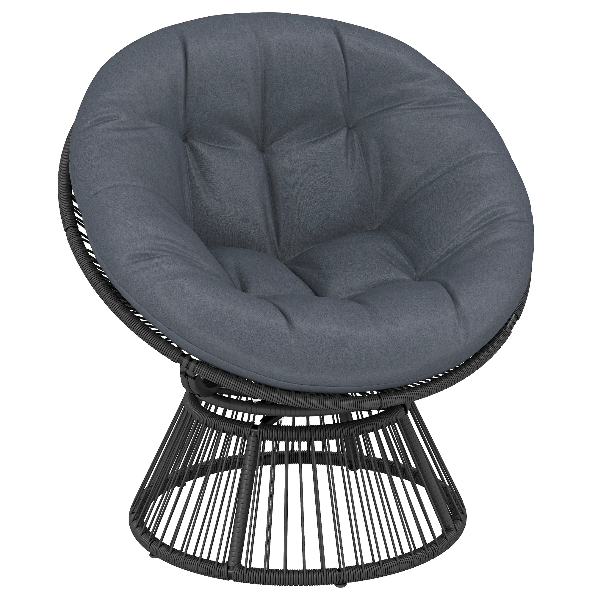 Papasans Stoel 360° Draaibaar Korfstoel Met Kussen Stalen Frame Ronde Rattanstoel Loungestoel Grijs