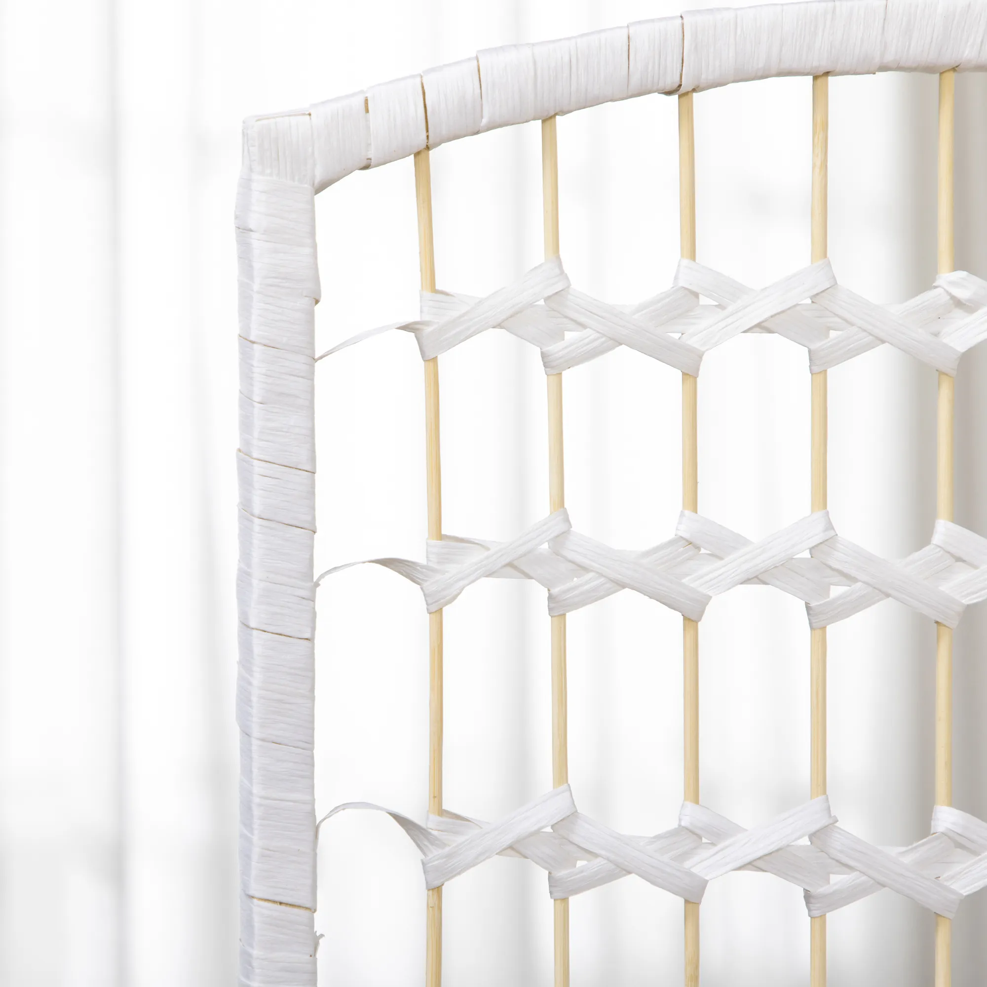 - Materiaal: Papierkoord, bamboe, grenenhout