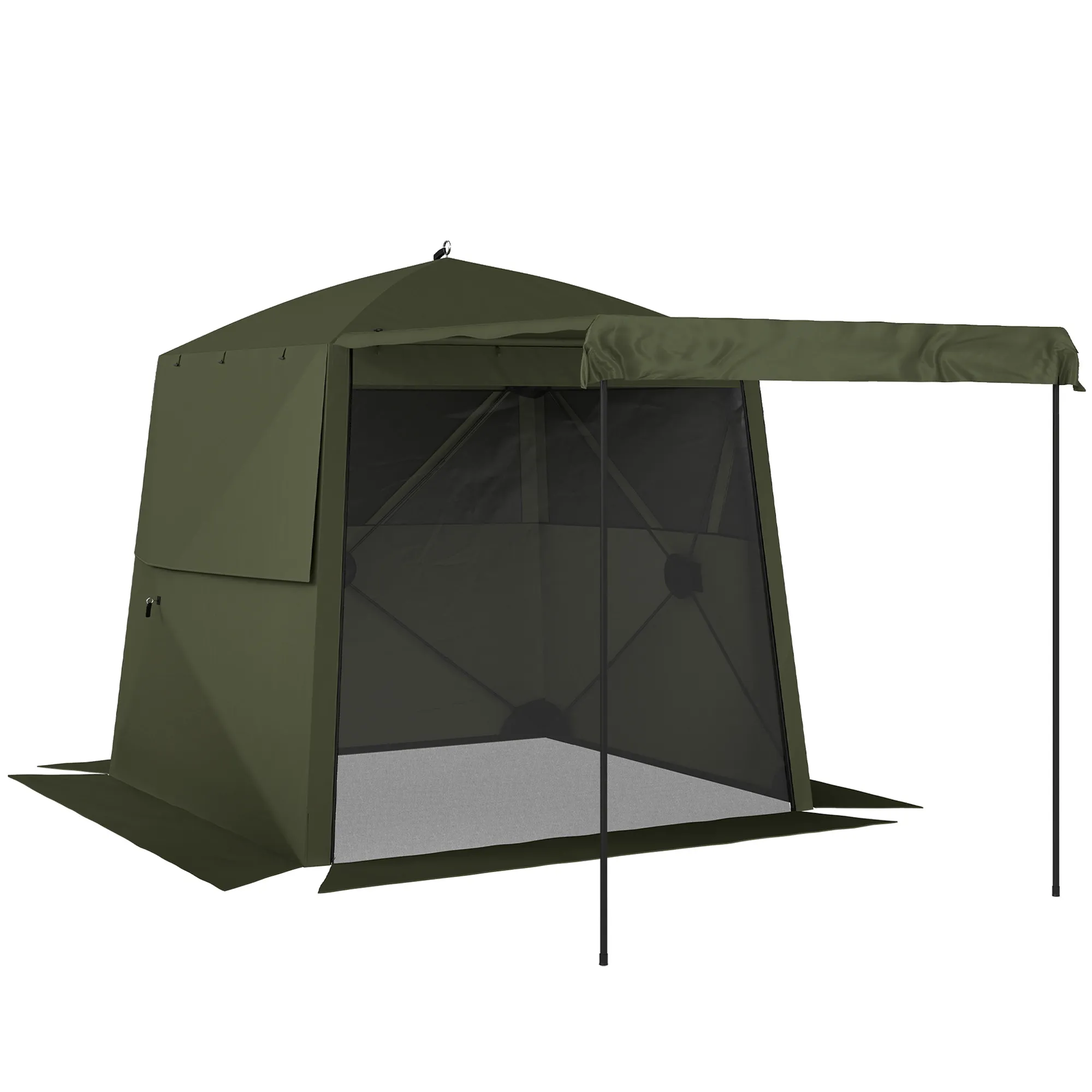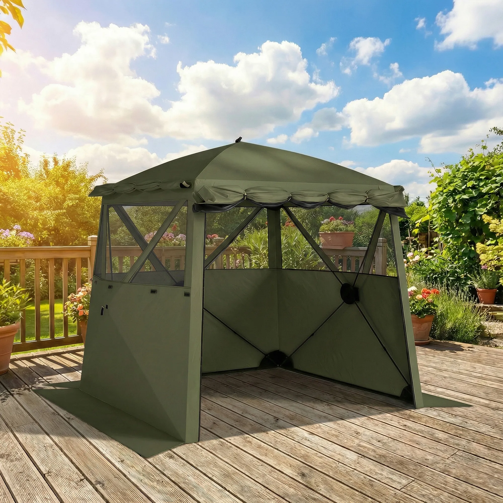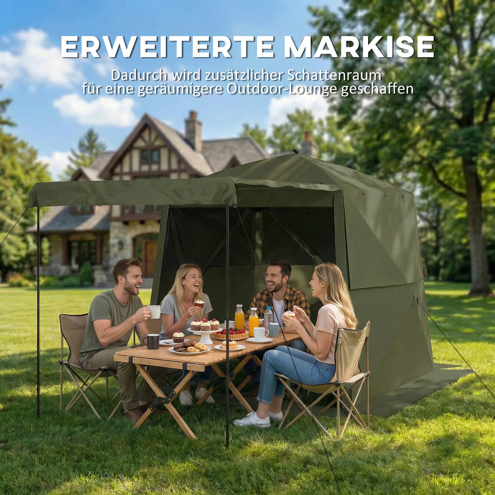 Bescherm jezelf tegen een onvoorspelbare hemel met het [BRAND NAME] paviljoen. Dit waterdichte paviljoen biedt UPF 30+ bescherming en heeft een uitbreidbare voordeur die kan dienen als schaduwrijke luifel. Creëer een uitnodigende loungeplek waar je heerlijk kunt ontspannen, ongeacht het weer.