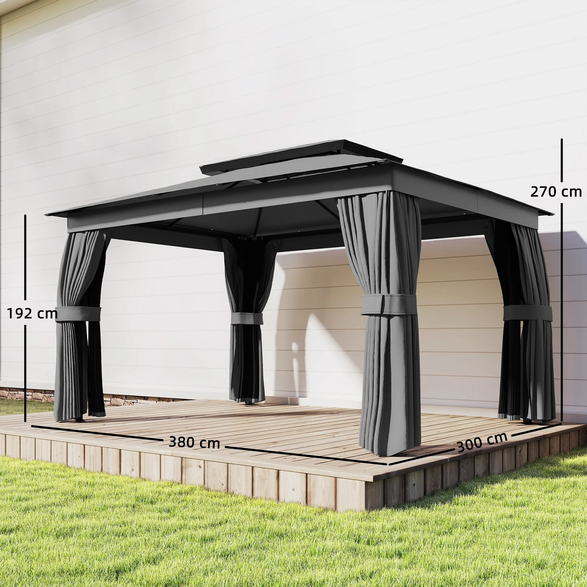 - Afmetingen totaal: 380L x 300B x 270H cm
