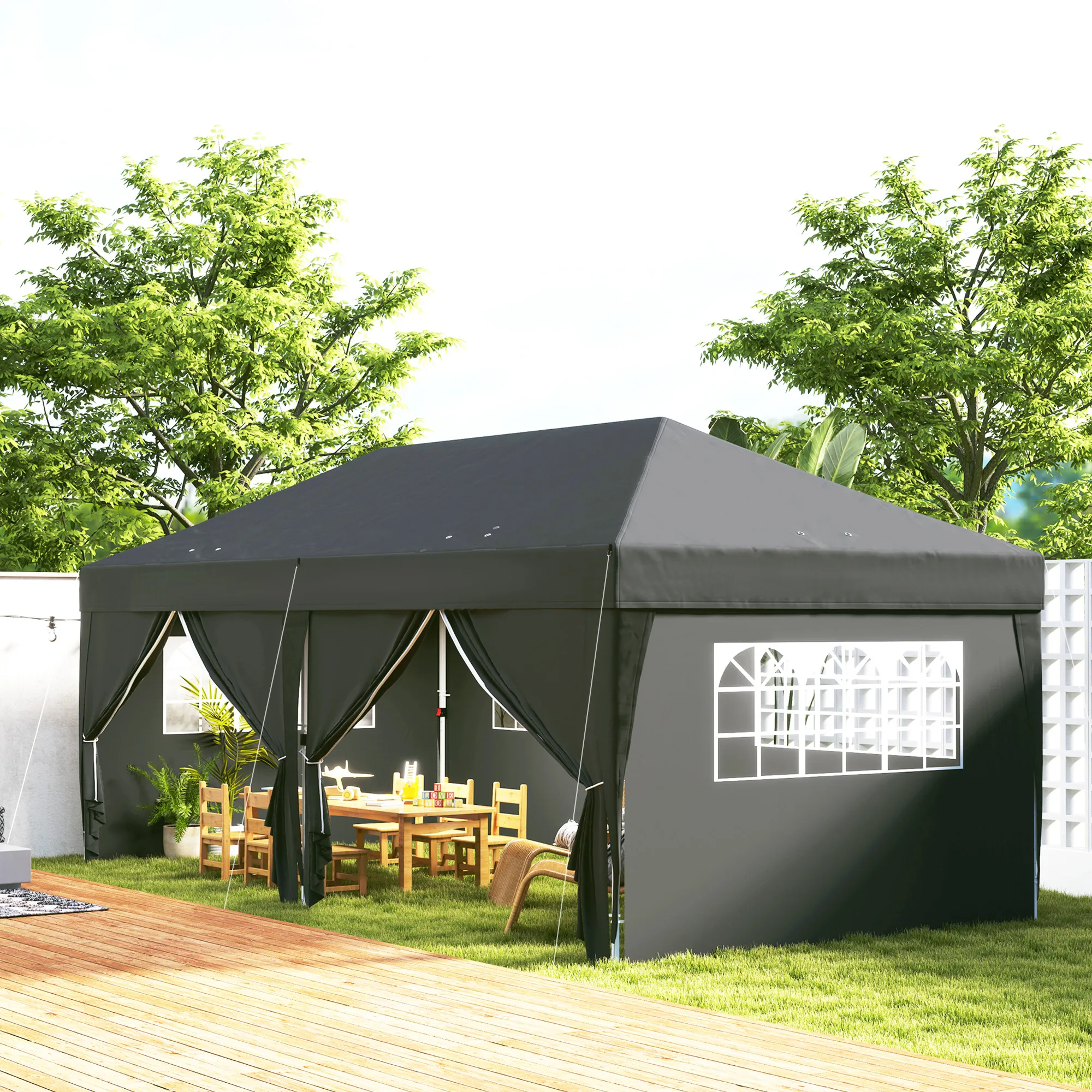 Paviljoen Ca. 6x3m Stabiel Winterbestendig Pop-up Vouwpaviljoen Met Vensters, Ritssluiting Deur, Zijpanelen, UV Bescherming