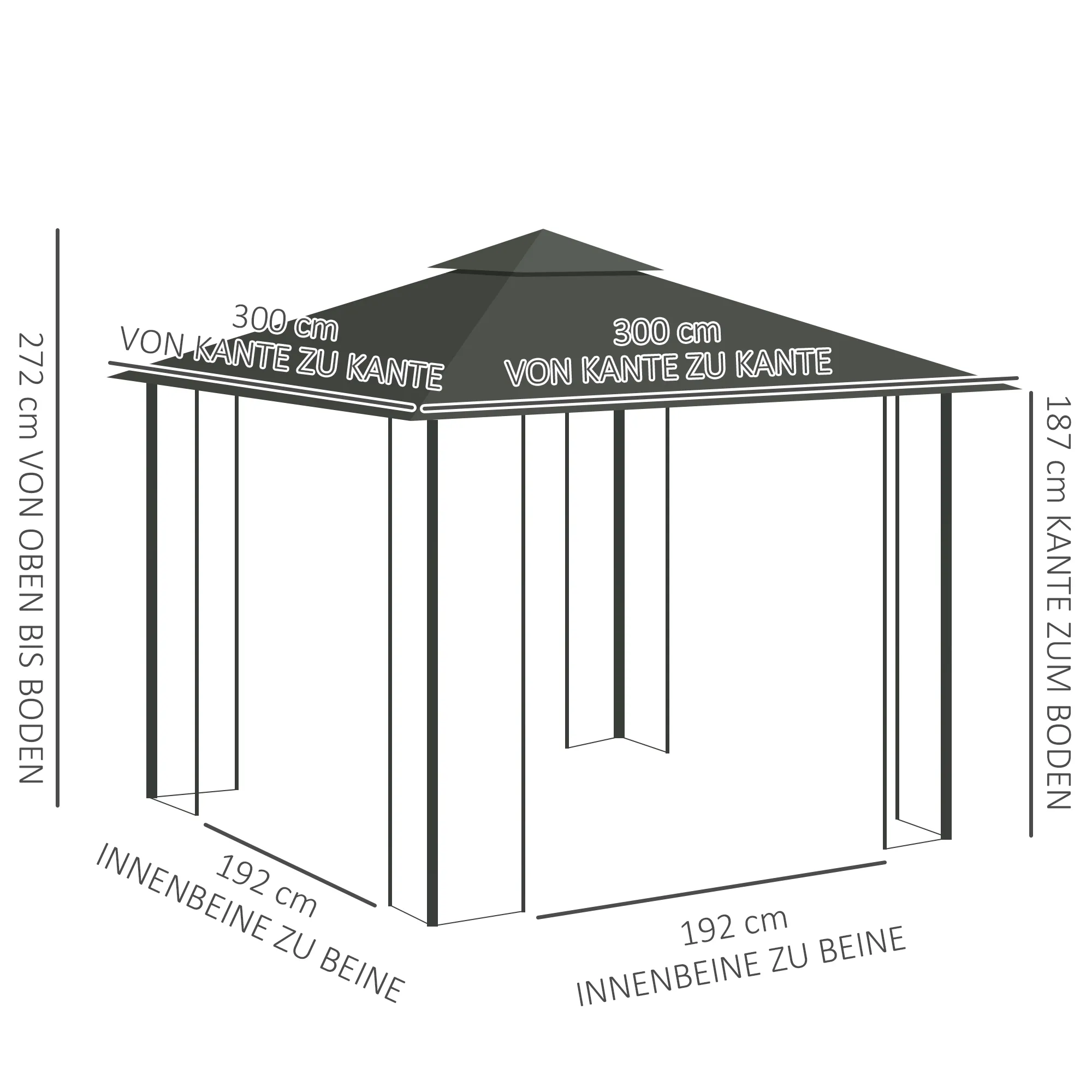 - Totale afmetingen: 300L x 300B x 272H cm