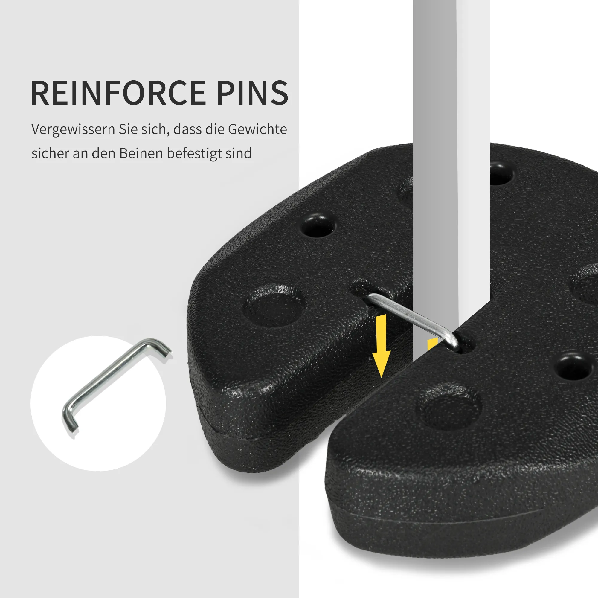 Houd je [BRAND NAME]-paviljoen veilig en stabiel met deze 3 kg paviljoengewichten van HDPE-kunststof. Deze gewichten zijn stevig, lekvrij en gevuld met cement, direct klaar voor gebruik. De bijgeleverde riem en bevestigingspinnen zorgen voor een veilige grip en gemakkelijk transport.