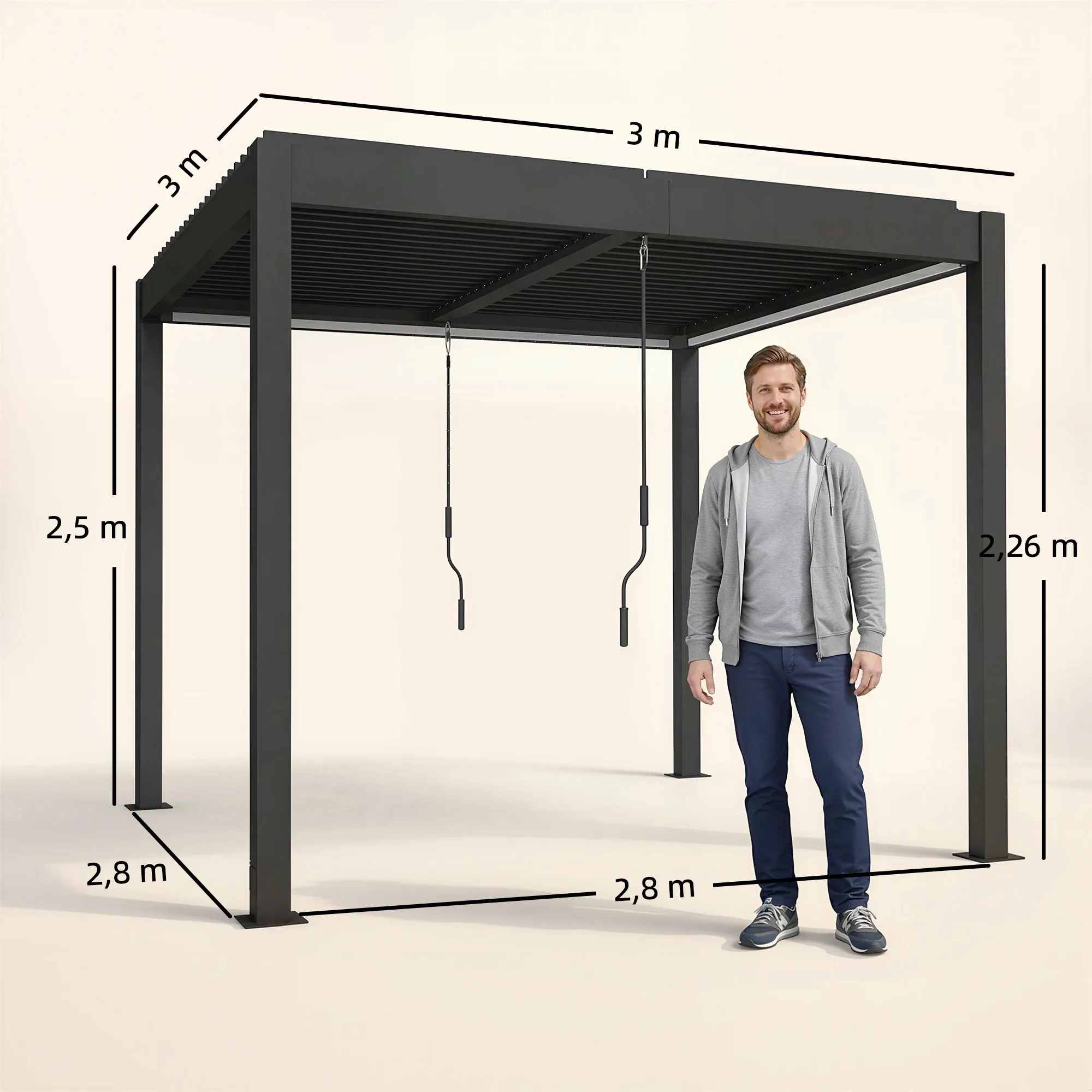 Geniet van onvergetelijke buitenmomenten, van zonnige middagen tot ontspannen avonden, met de [BRAND NAME] lamellenpergola. Het verstelbare metalen dak regelt moeiteloos licht en schaduw. LED-buizen met magnetische afstandsbediening zorgen ’s nachts voor zachte verlichting. Een stevig aluminium frame met slimme afwatering van het terrasoverkapping creëert een stabiele, uitnodigende sfeer voor ontspannen buitenleven.