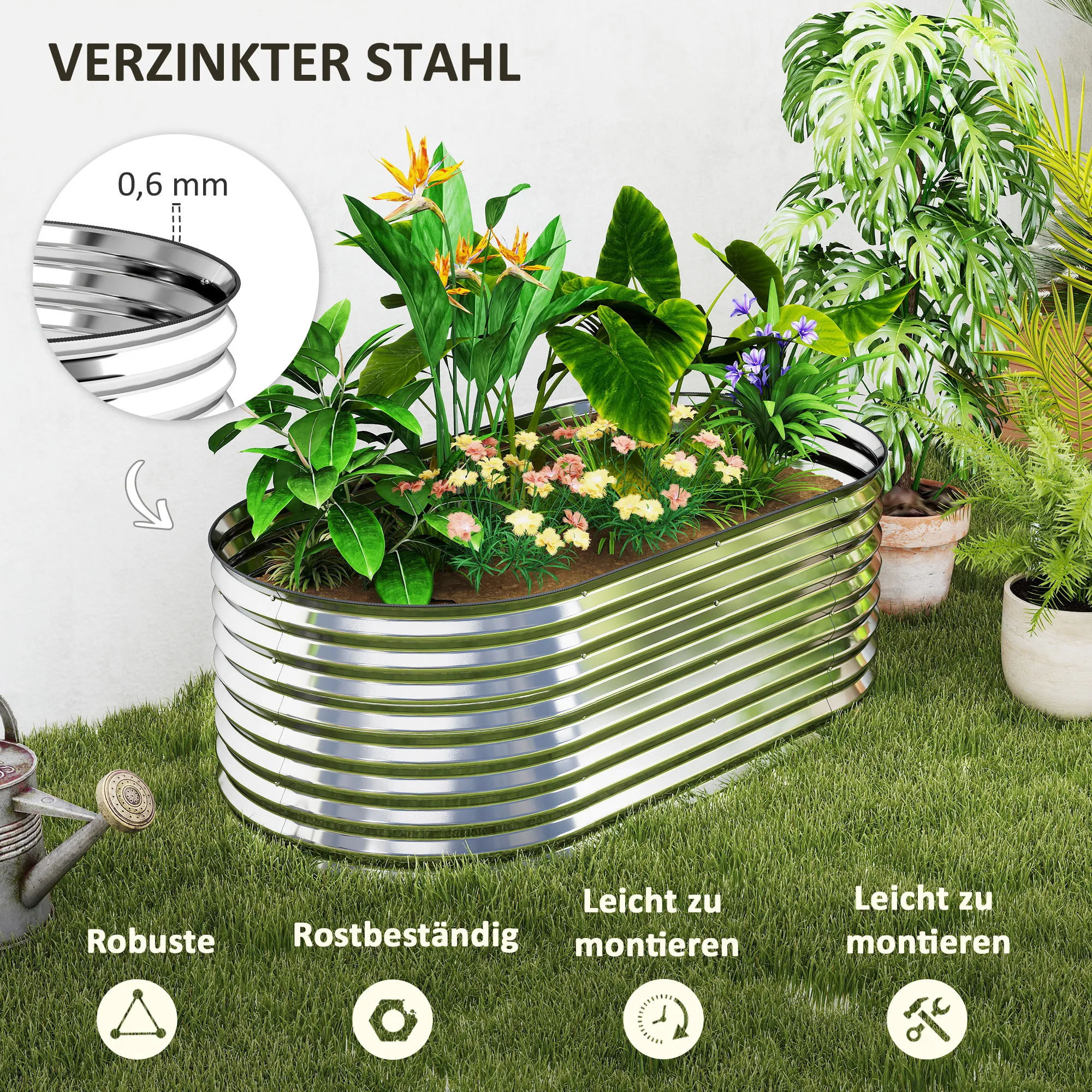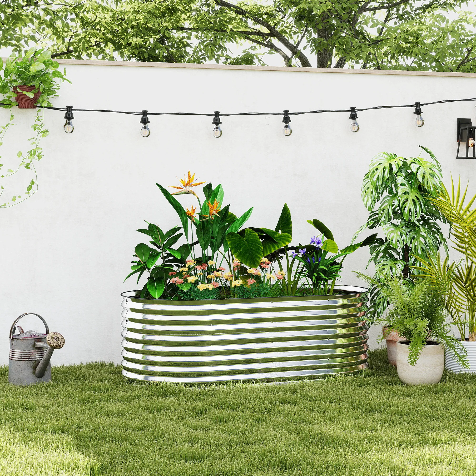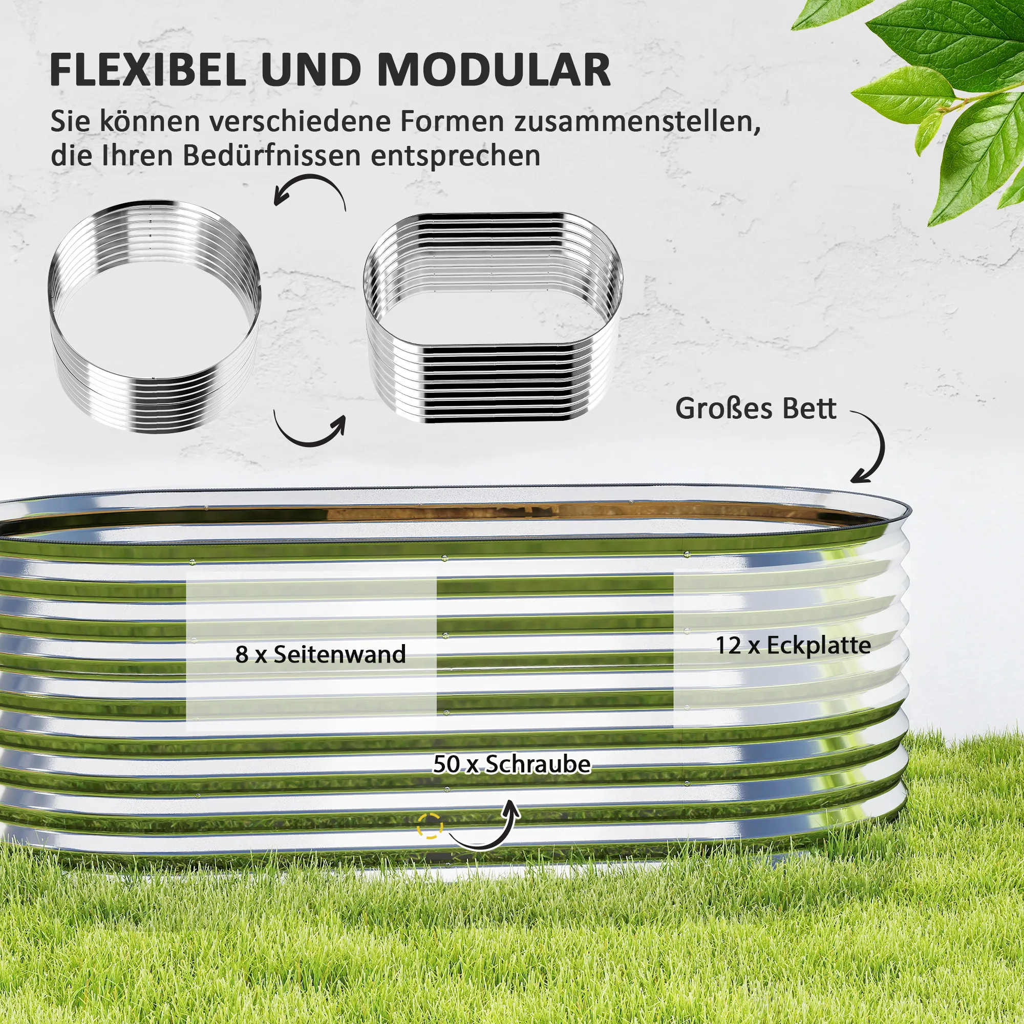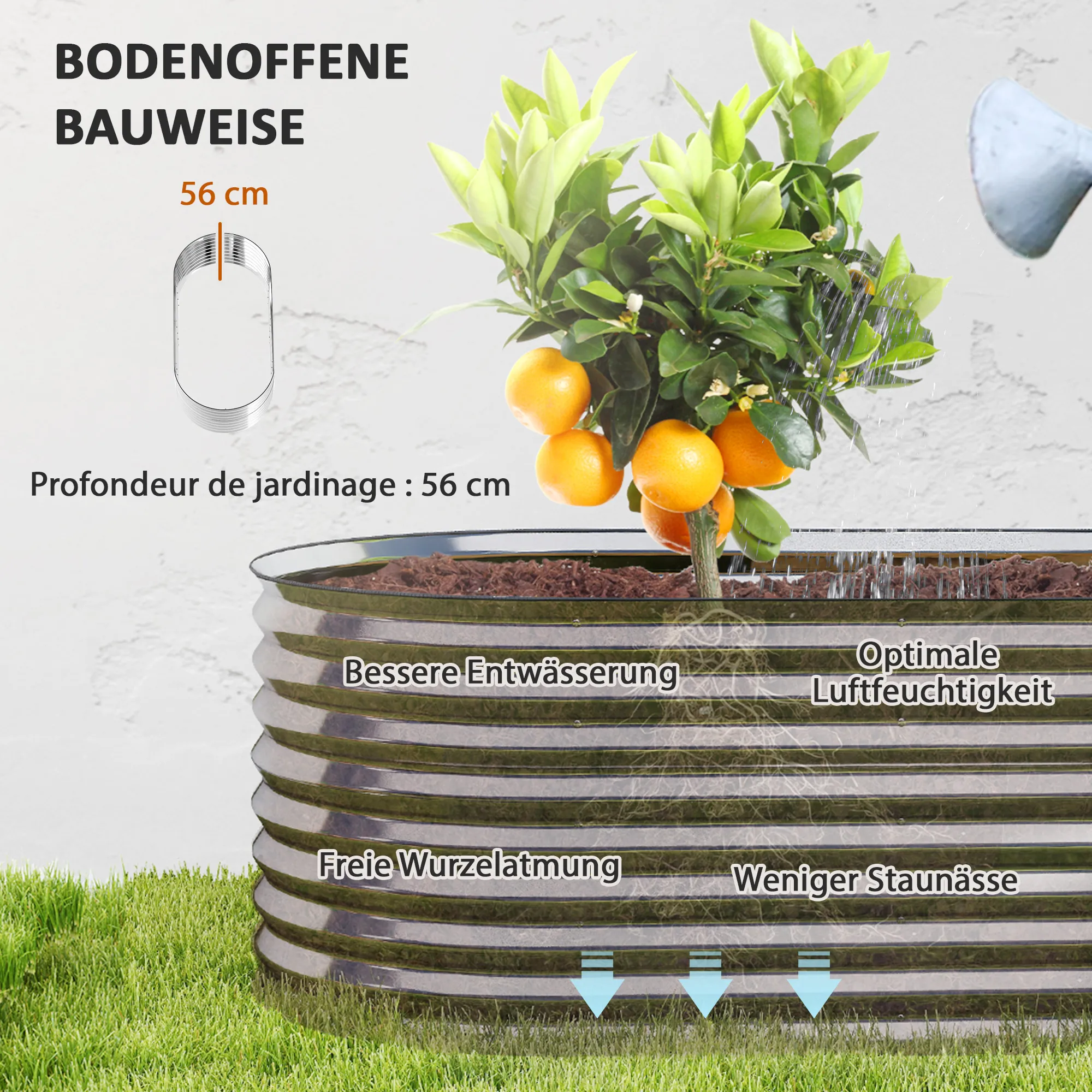 Creëer een prachtige tuin met het flexibele verhoogde bed van [BRAND NAME]. Dit verzinkte verhoogde bed is ideaal voor op het balkon en is roestbestendig, bestand tegen hoge druk en slecht weer. Met zijn golvende, ovale structuur biedt het voldoende ruimte en diepte voor diep wortelende planten. De open bodem zorgt voor een uitstekende afwatering en bevordert gezonde wortelgroei. Dankzij de rubberen randen en meegeleverde handschoenen is de montage veilig en eenvoudig.