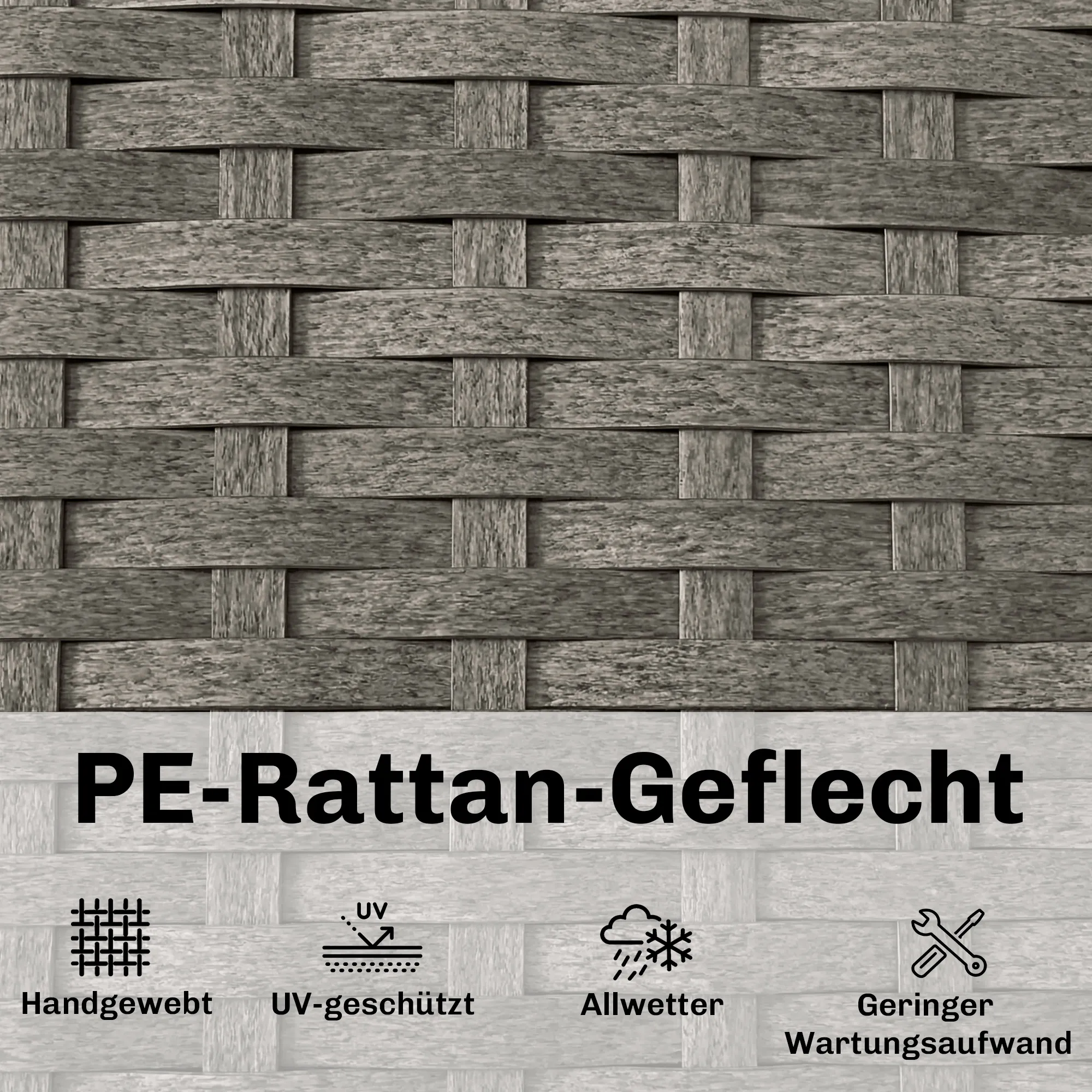 - Weerbestendig: PE-rattan en poedergecoat metalen frame voor duurzaamheid