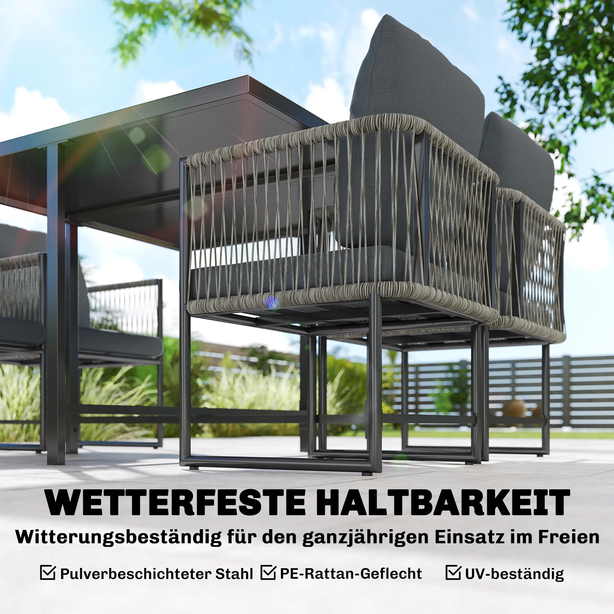 - Materiaal: Staal, DPC, PE-Rattan, Polyester