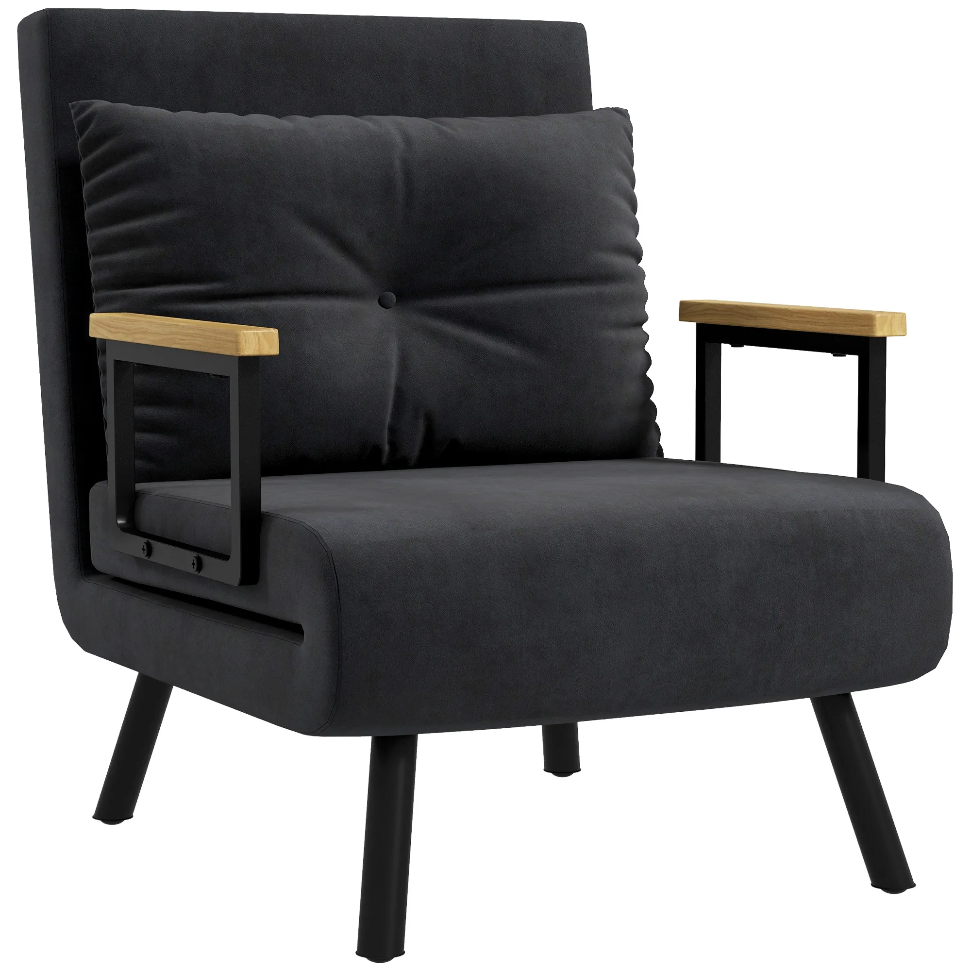 Ontdek het ultieme comfort met de [BRAND NAME] slaapfauteuil, die eenvoudig transformeert van een zit- naar een slaappositie. Met een stevig stalen frame en een vijfvoudig verstelbare rugleuning, geniet je van een stabiele en comfortabele ondersteuning. De weelderige bekleding, de fluweelzachte stof en het extra sierkussen zorgen voor een buitengewone zitervaring. Ideaal als woonkamerstoel overdag en comfortabel logeerbed ‘s nachts.