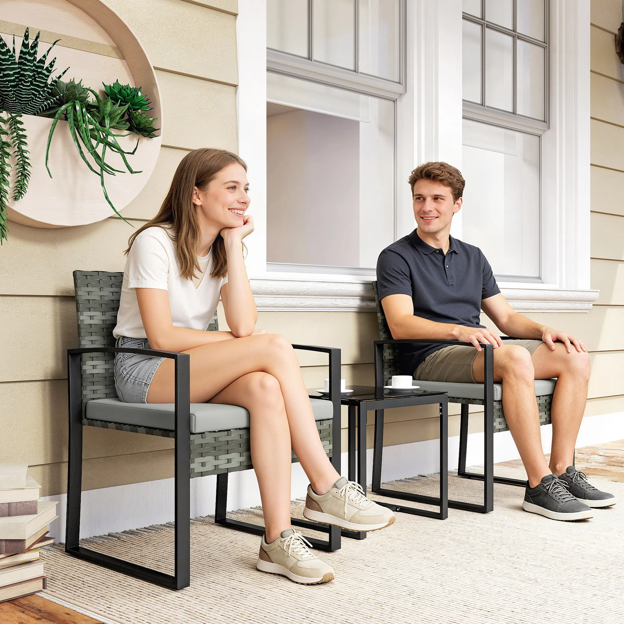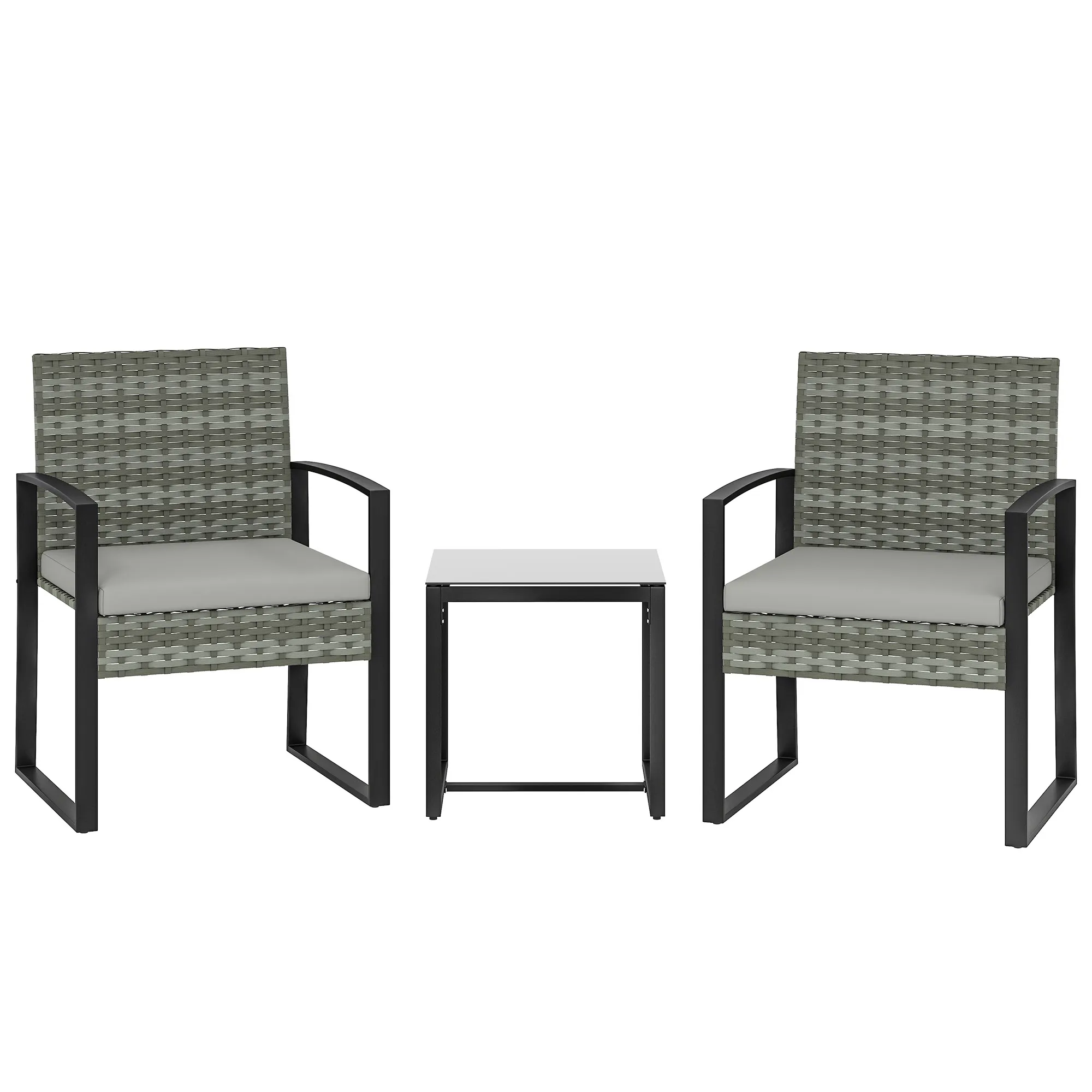 Rieten Bistroset, 3-delige Tuinmeubelset Met 2 Tuinstoelen, Salontafel, Afneembare Kussens Lichtgrijs