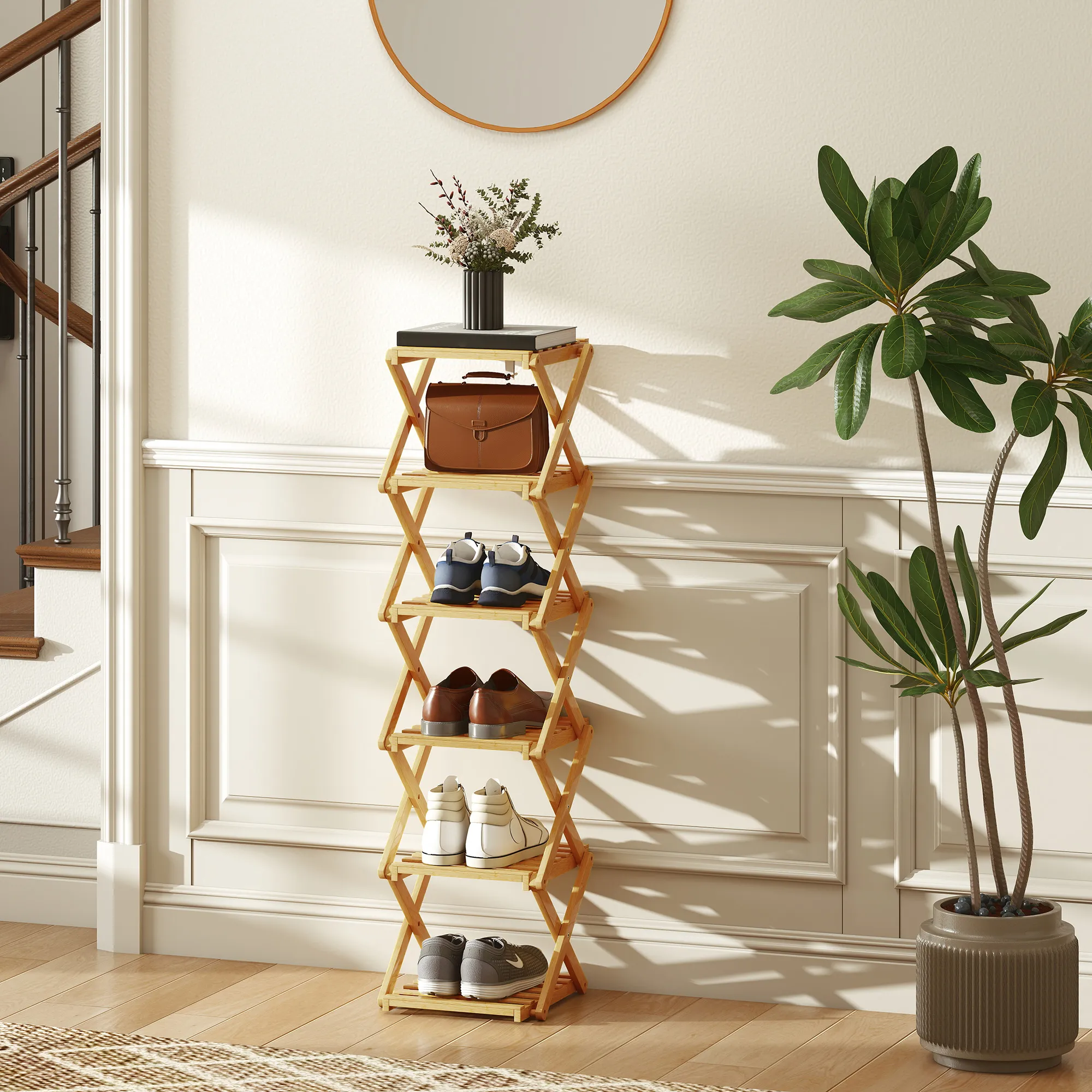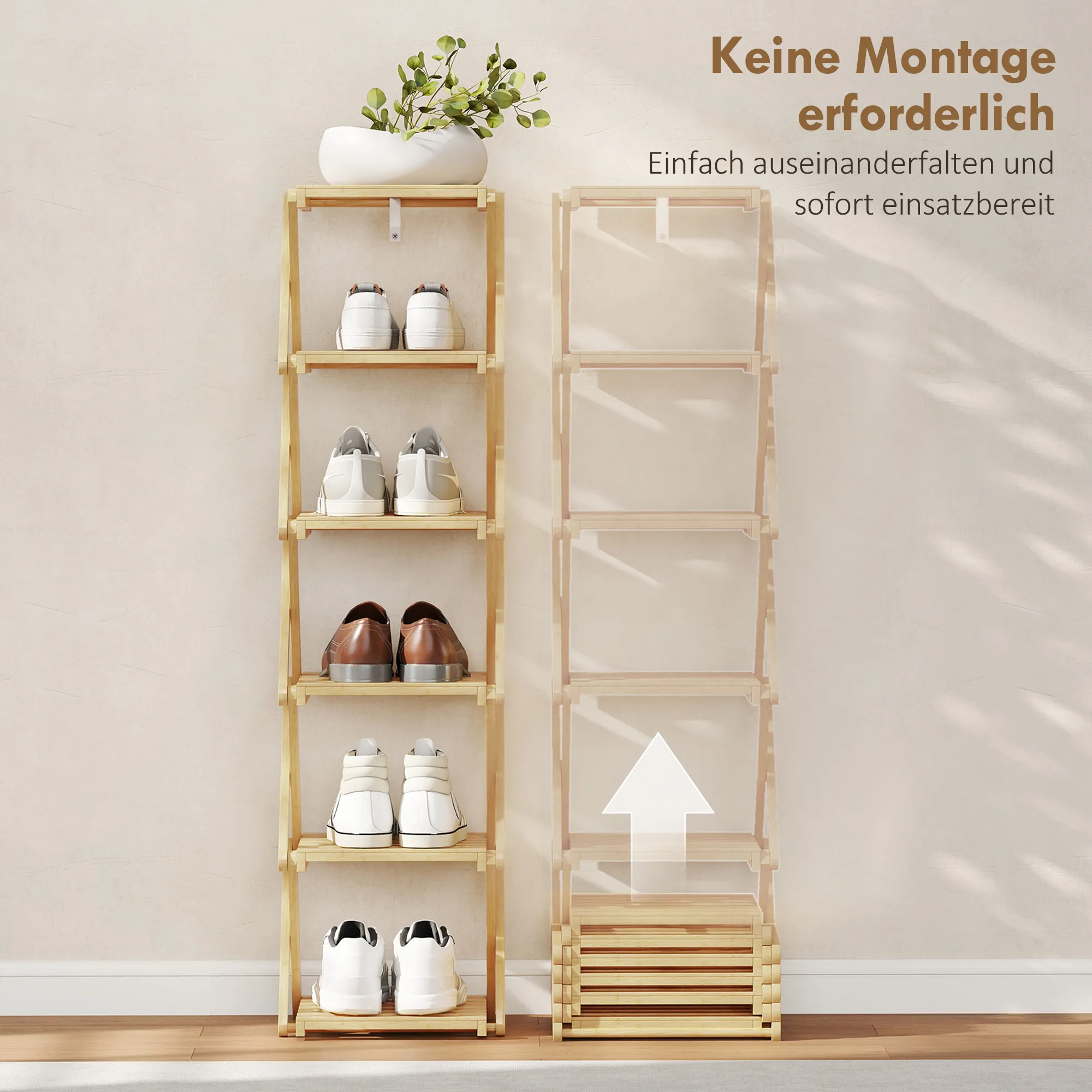 Schoenenrek, Opvouwbare Schoenenstandaard Met 6 Niveaus Van Bamboe, Voor Max. 9 Paar Schoenen, 30 X 29 X 108 Cm, Natuur