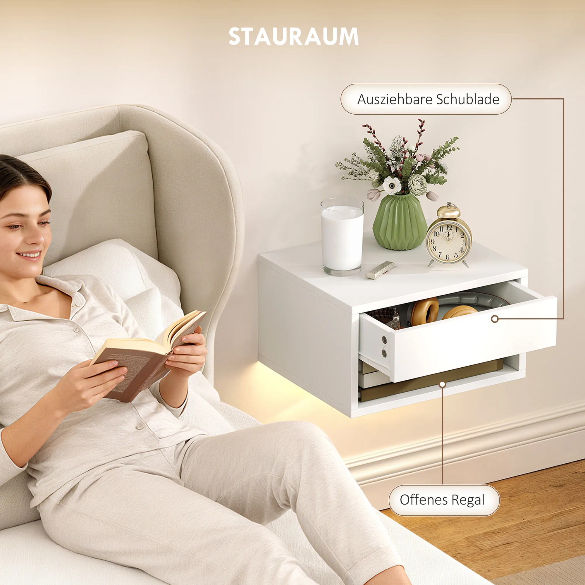 Creëer een harmonieuze slaapkamer en geniet van een opgeruimde ruimte met het [BRAND NAME] zwevende nachtkastje. Bestel vandaag nog!