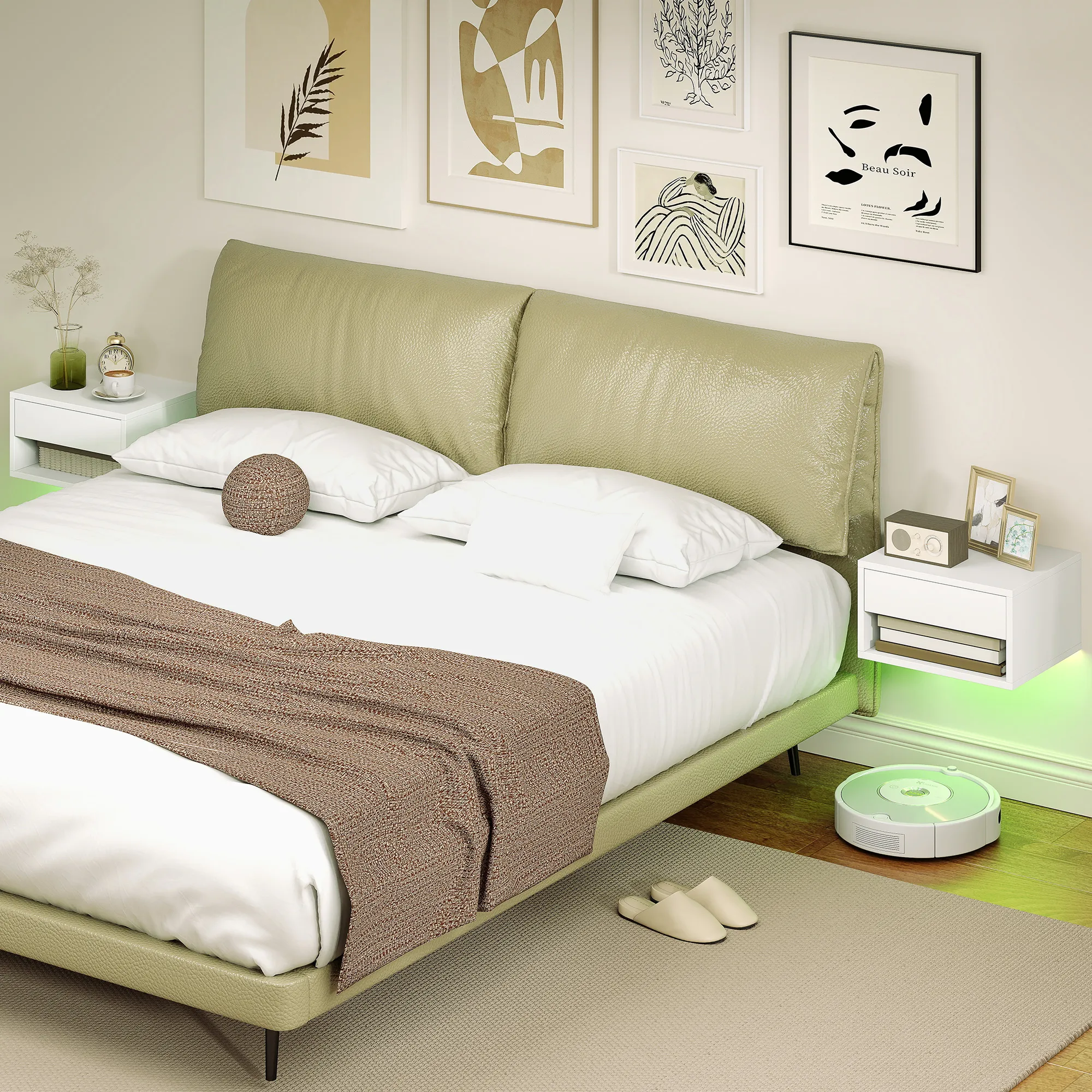 Wil je een rommelige, donkere slaapkamer transformeren naar een oase van rust? Het [BRAND NAME] zwevende nachtkastje is de oplossing! Dit handige nachtkastje wordt aan de muur gemonteerd, waardoor je vloerruimte bespaart en de chaos elimineert. Met ingebouwde verlichting die je veilig door het donker leidt en slimme opbergoplossingen om je belangrijkste spullen georganiseerd en binnen handbereik te houden, geniet je van een ontspannen avond zonder gedoe.