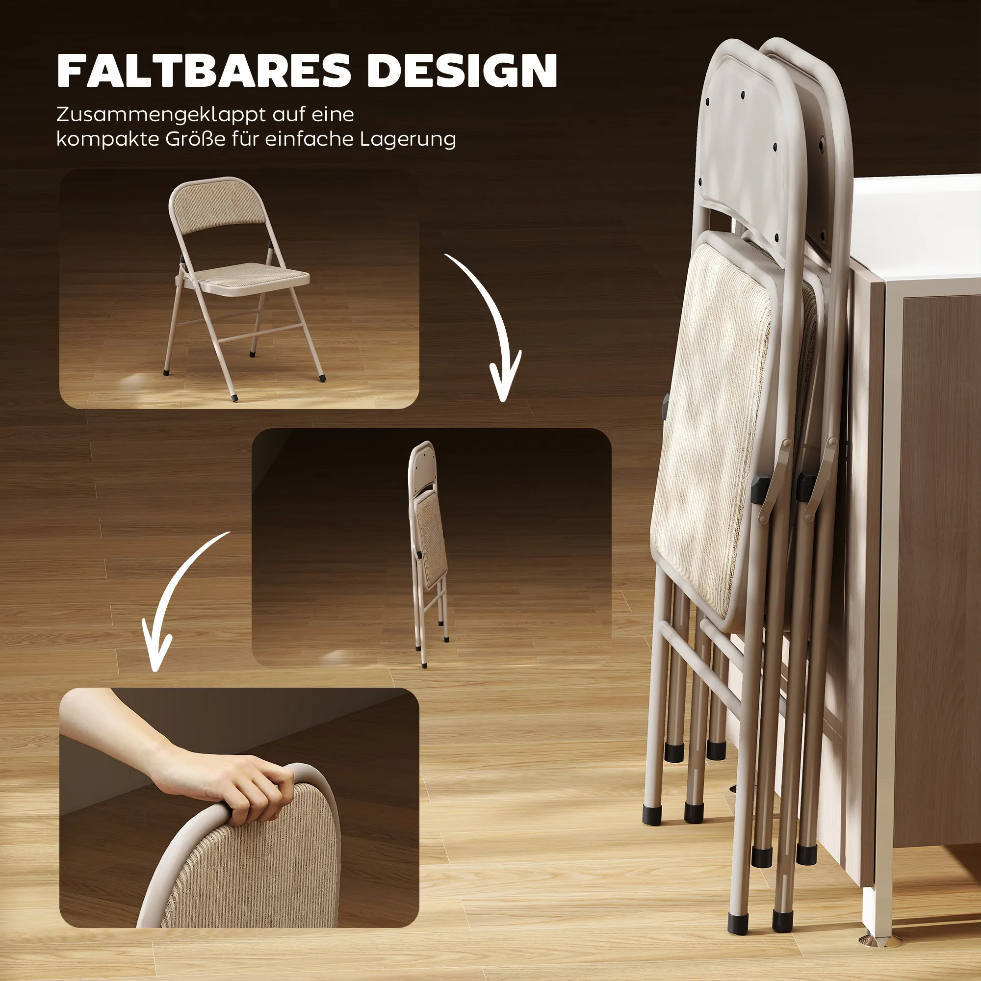 Set Van 2 Opklapstoelen, Draagbare Kantoorstoelen, Metalen Poten, Opklapstoel Voor Kantoor, Receptie, Wachtkamer, Linnenlook, Beige