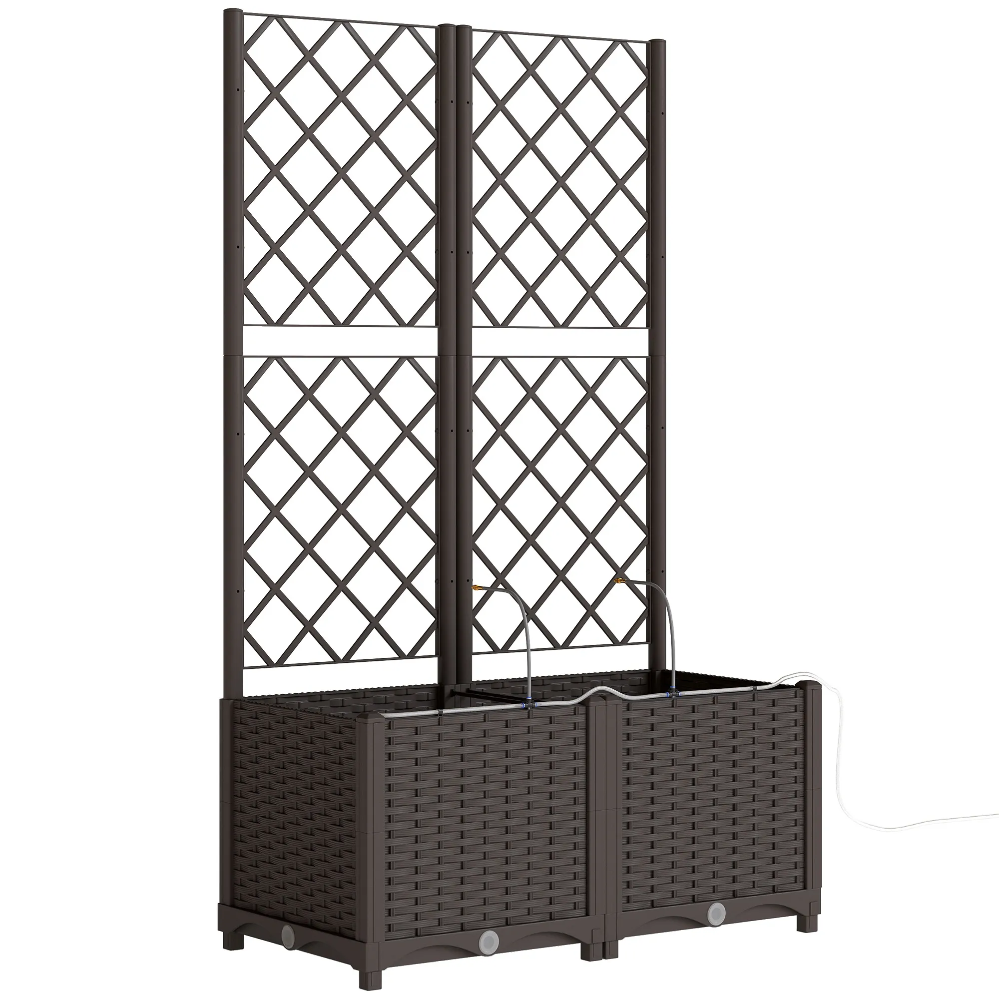 Set Van 2 Trellis Met Plantenbak Bloembak Met Drainagegat Timer Bewateringssysteem 80 X 40 X 136 Cm Bruin