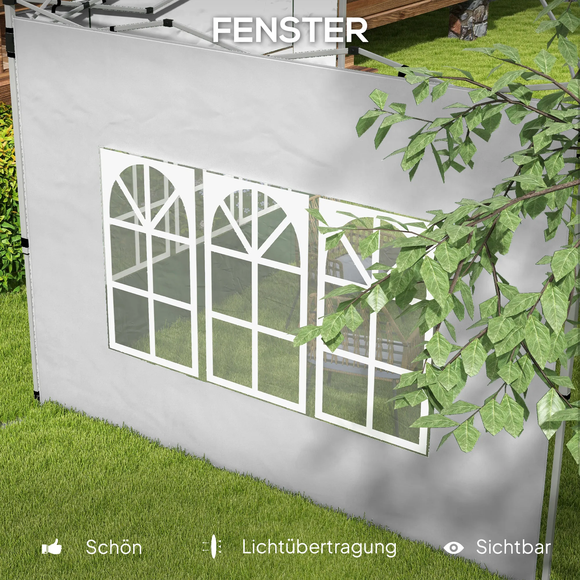 Set Van 2 Zijpanelen Voor Paviljoen 3×3/3×4 M, Zijwand Met Raam, Waterdicht Lichtgrijs