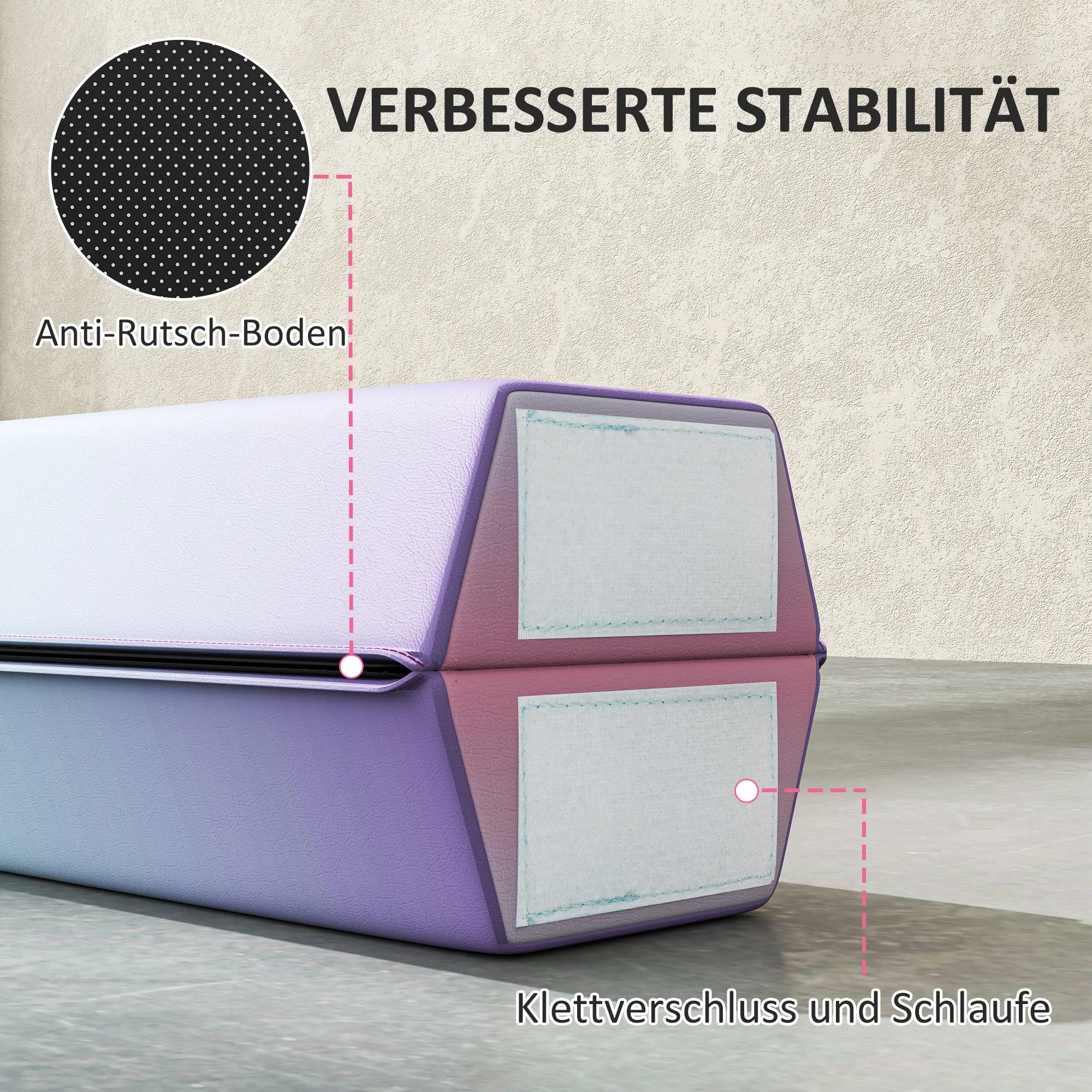 Ontdek de SPORTNOW evenwichtsbalk voor thuis – het ideale trainingsapparaat voor elk niveau! Met een hoogwaardige EVA-schuimkern en een elegante oppervlakte biedt deze lichte, maar stabiele evenwichtsbalk optimaal comfort. De 10 cm brede wedstrijdoppervlakte stelt je in staat om moeiteloos oefeningen zoals handstanden, radslagen en sprongen te perfectioneren – heel comfortabel thuis of in de turnzaal. De antislipbodem zorgt voor extra stabiliteit, zodat elke routine een plezier wordt.
