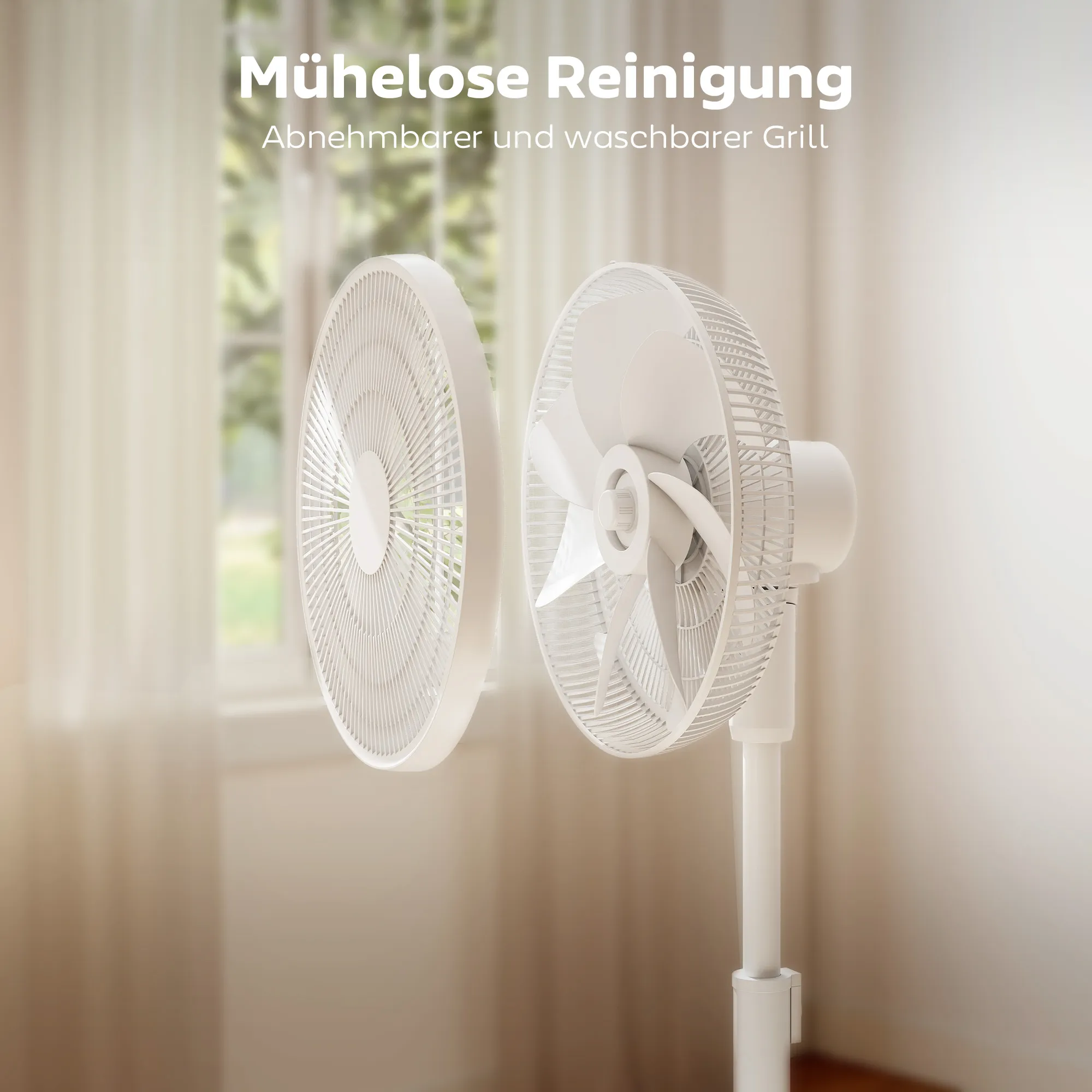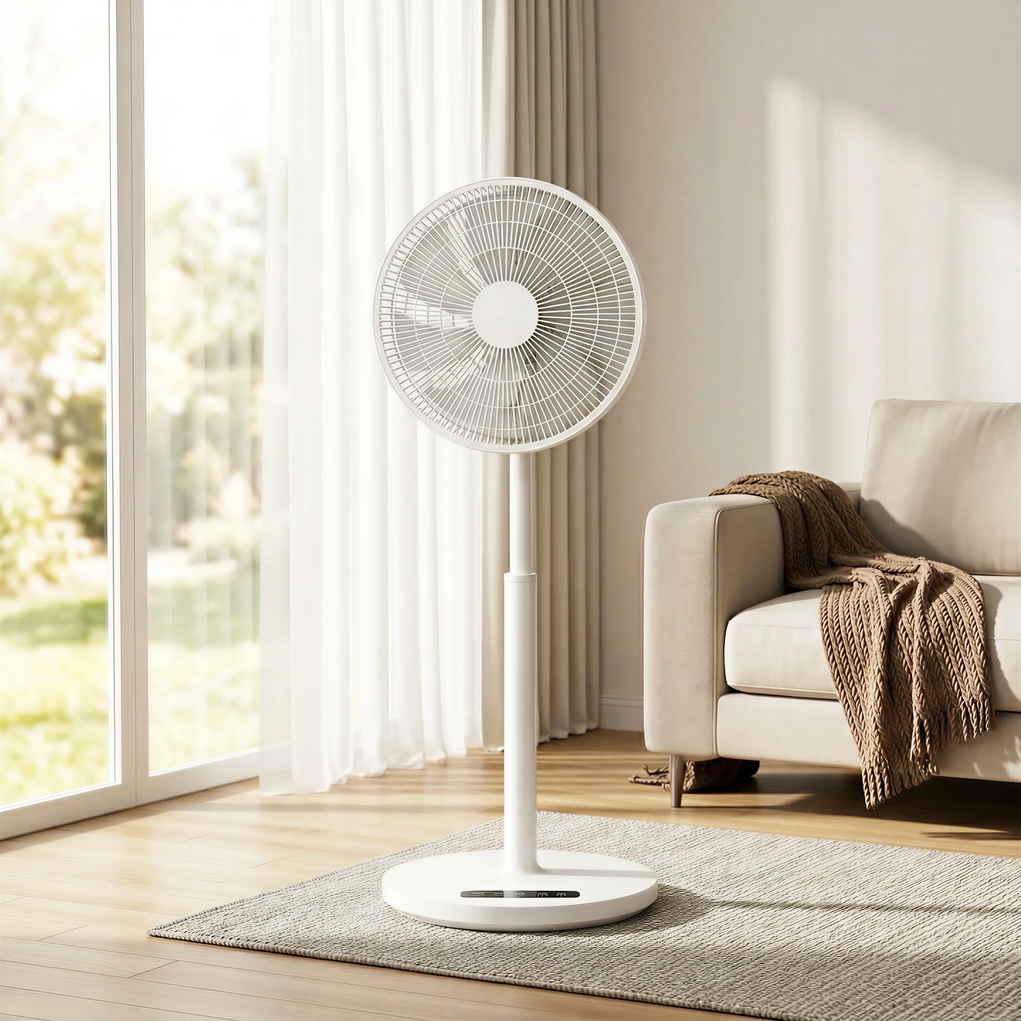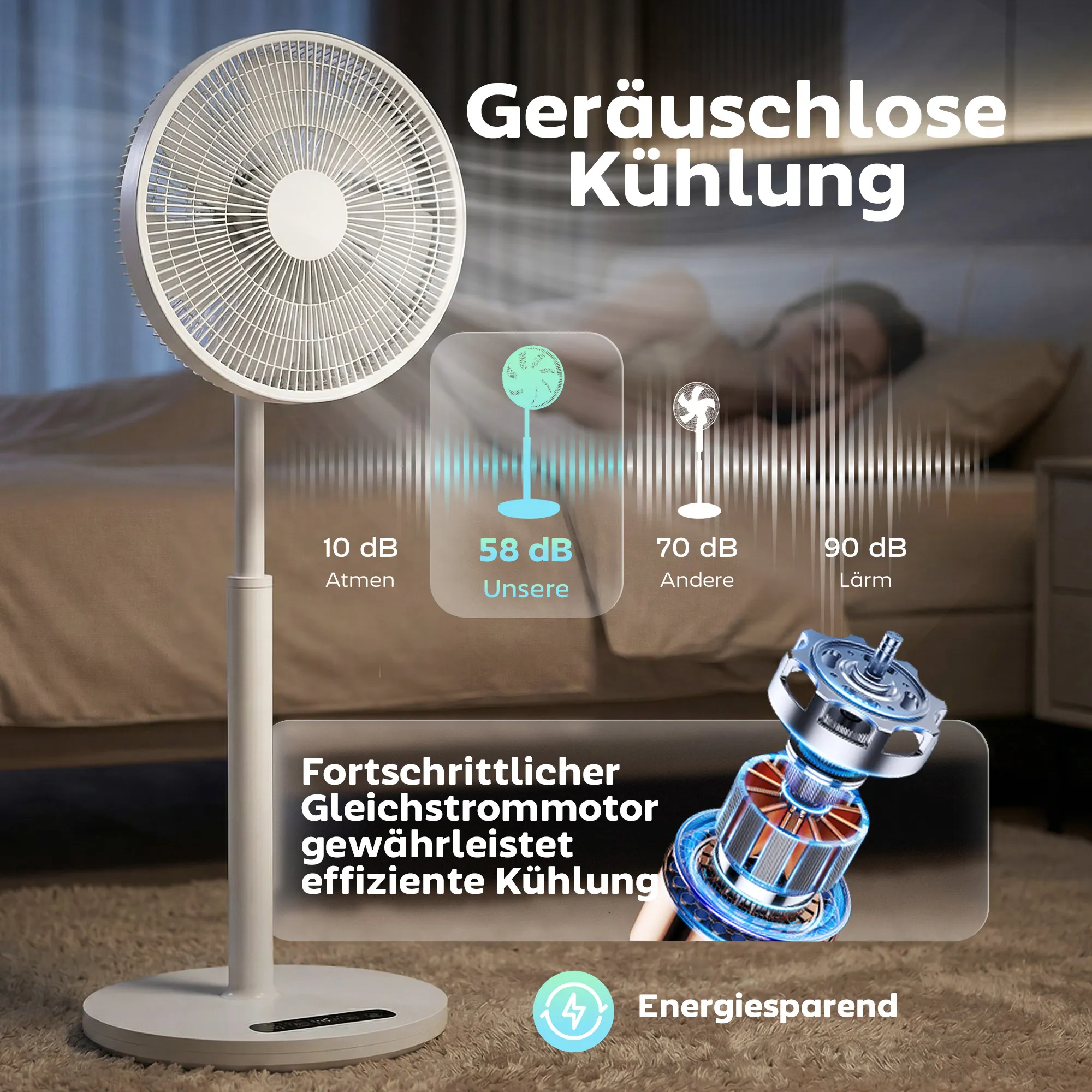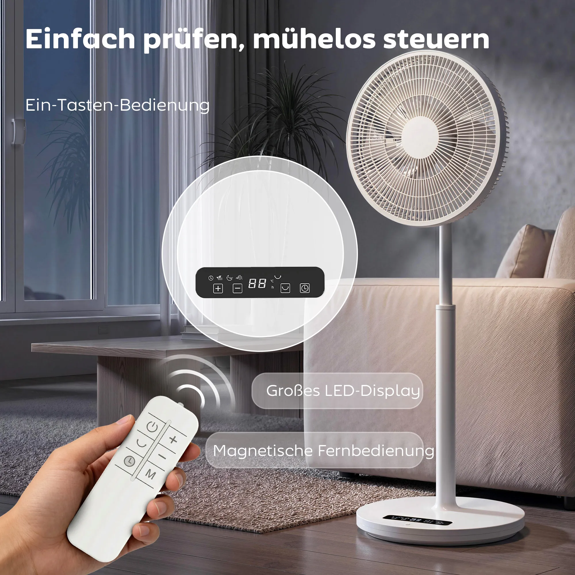 Blijf koel en comfortabel met de [BRAND NAME] vloerventilator. De energiezuinige 30W DC-motor zorgt voor krachtige koeling met slechts 40 dB in de slaapstand. Met 12 snelheden en vier modi – van zachte bries tot verfrissende luchtstroom – vindt je altijd de juiste instelling. Slimme touch-bediening, 9-uurs timer en magnetische afstandsbediening zorgen voor gemakkelijke koeling op elk moment.