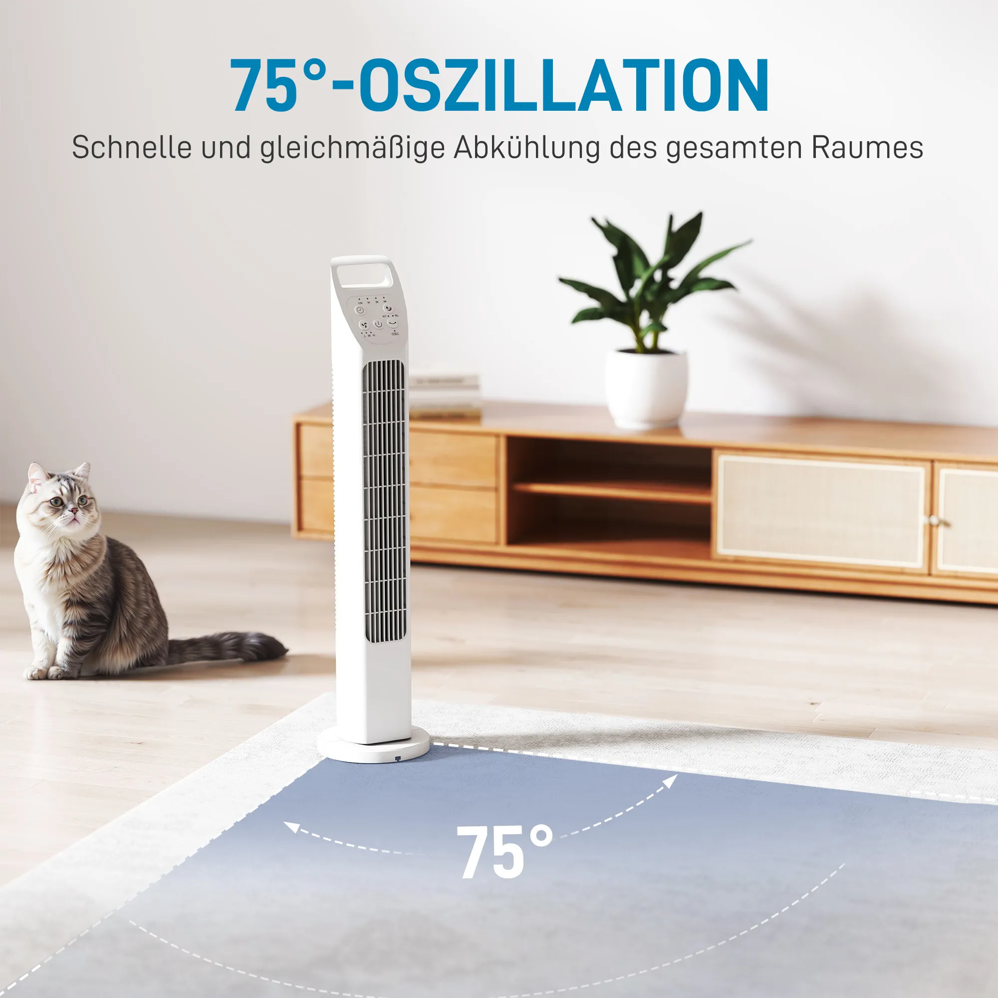 Torenventilator Met Afstandsbediening, 7,5-uurs Timer, Stille Ventilator Voor Slaapkamer, Wit