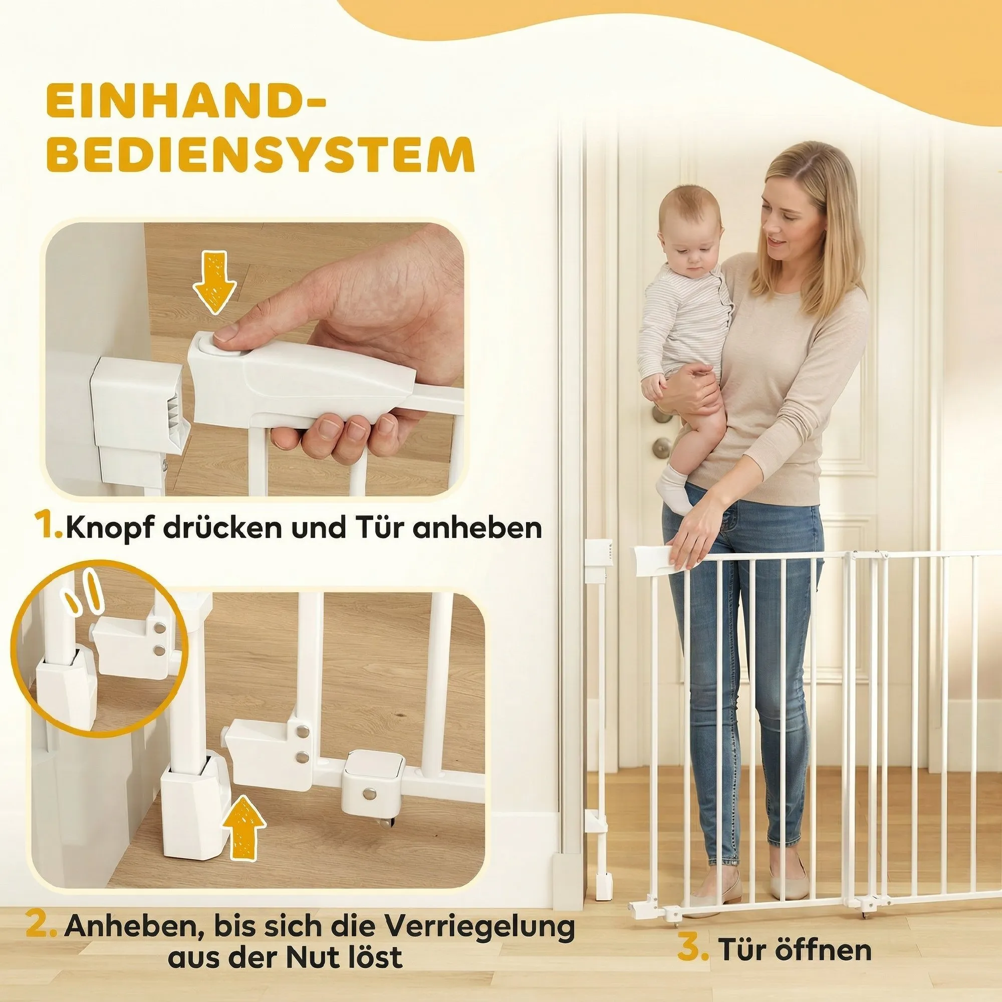 Traphekje Deurbeveiligingshekje 74,5-111,5cm Deurhekje Met Auto-Sluit Tweezijdige Eenhandige Opening Wit