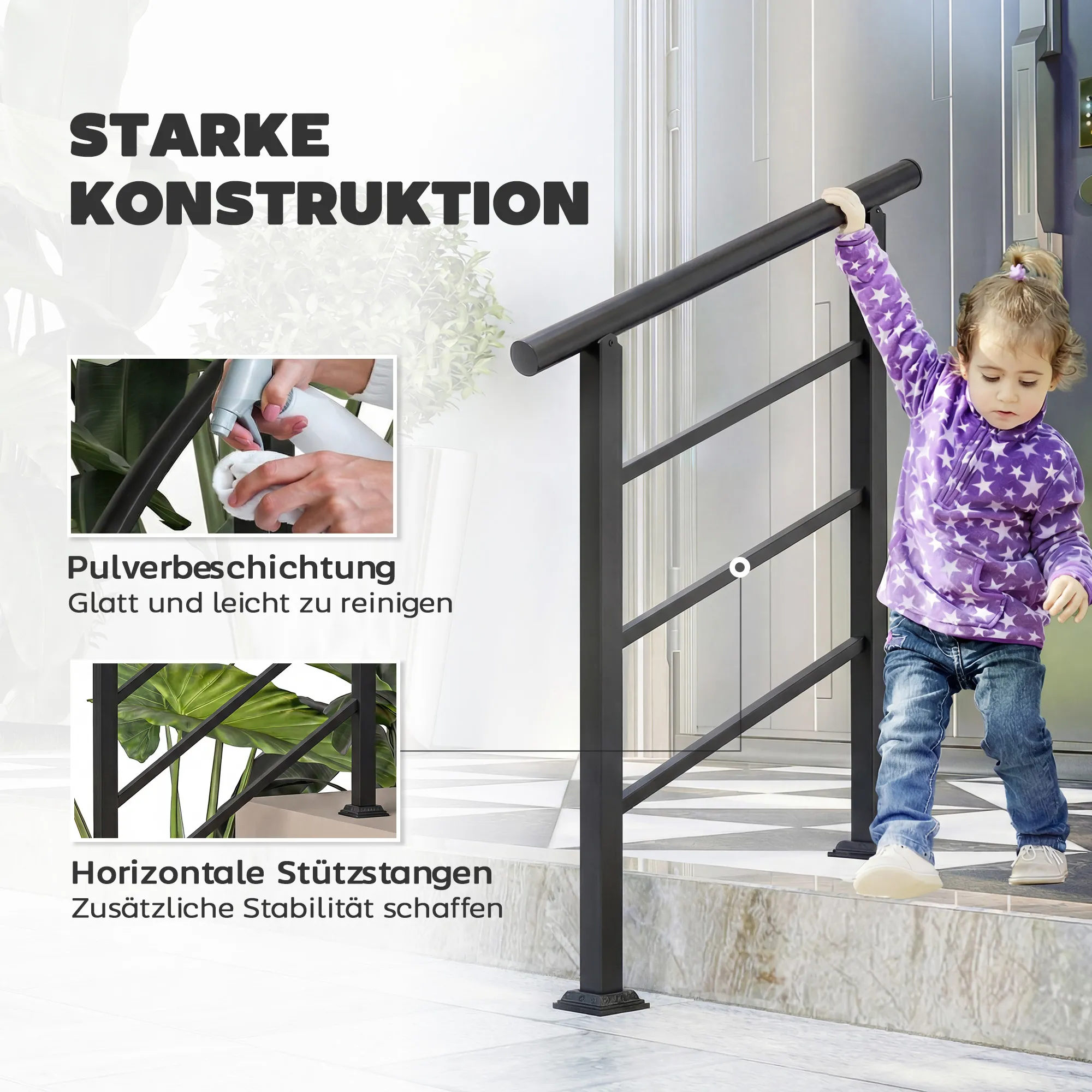 Zorgen maken over een geliefde op oneffen treden kan stressvol zijn. De [BRAND NAME] trapleuning biedt veiligheid met een hoek van 0°-45°, geschikt voor 1-3 treden of vlak terrein. De driestangstructuur zorgt voor een veilige grip, de installatie is eenvoudig – op beton of hout. De [BRAND NAME] trapleuning brengt veiligheid en onafhankelijkheid in jouw dagelijks leven.