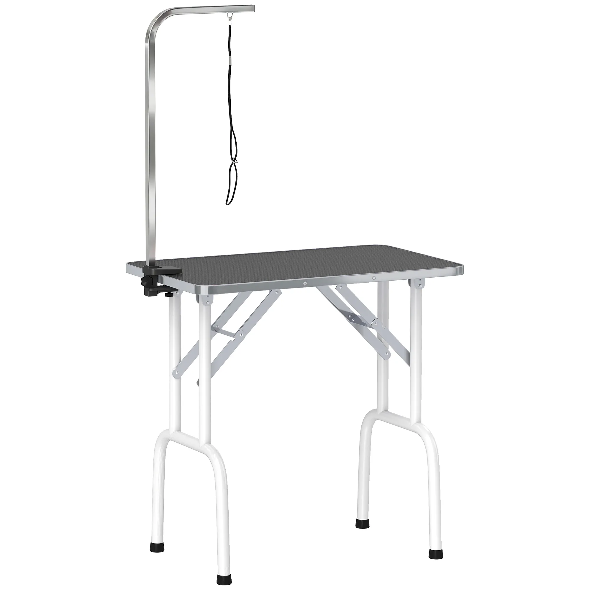 De trimtafel van [BRAND NAME] is een must-have voor elke professionele of thuis hondenkapper. Met deze tafel til je het verzorgingsniveau van je harige vriend naar een hoger niveau, zodat je hem gemakkelijk kunt bereiken voor een bad, trimbeurt, drogen of verzorging. De stevige tafel heeft volledig gelaste, opvouwbare buispoten voor maximale sterkte en duurzaamheid, en een geribbeld rubberen oppervlak voor het comfort van je huisdier. Dit professionele kwaliteitsstuk verzorgingsuitrusting mag niet ontbreken in jouw collectie!