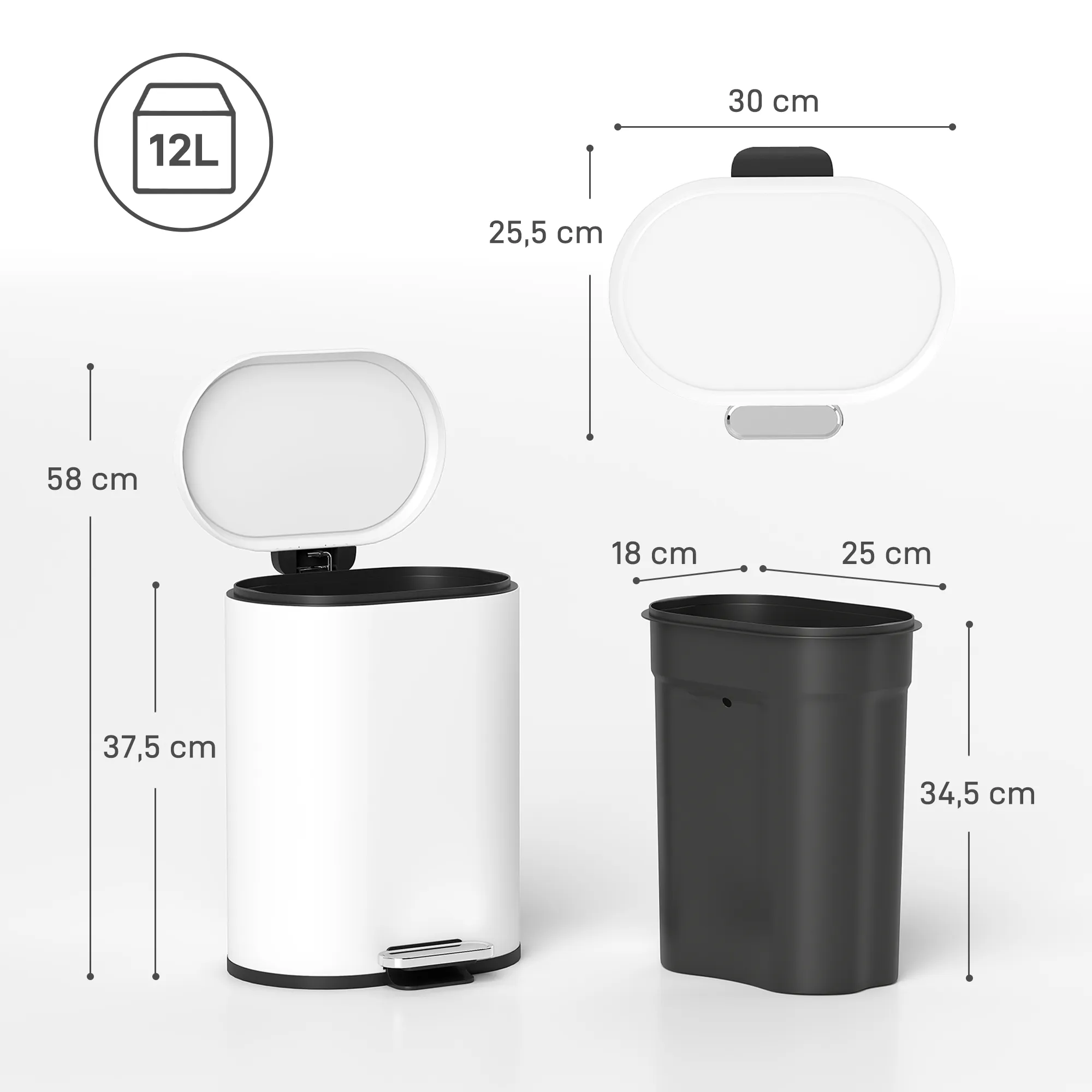 TRUUSK 12L Pedaalemmer Afvalemmer – Met Deksel – Voetpedaal – Soft-Close-Functie – Binnenemmer – 30 x 25,5 x 37,5 cm – Wit