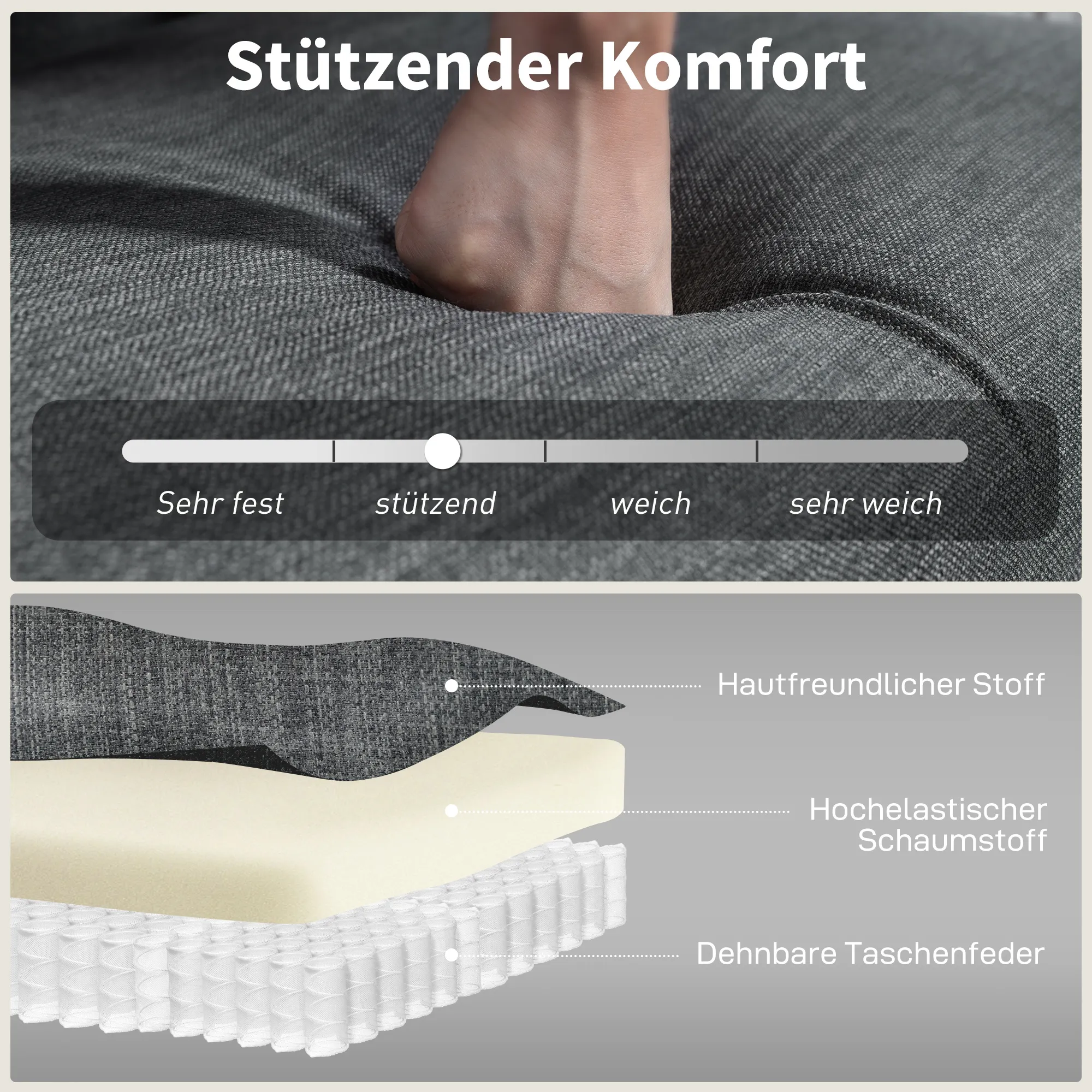 - Materiaal: Stof in linnenlook (100% polyester), schuim, rubberhout, meerlaags plaat