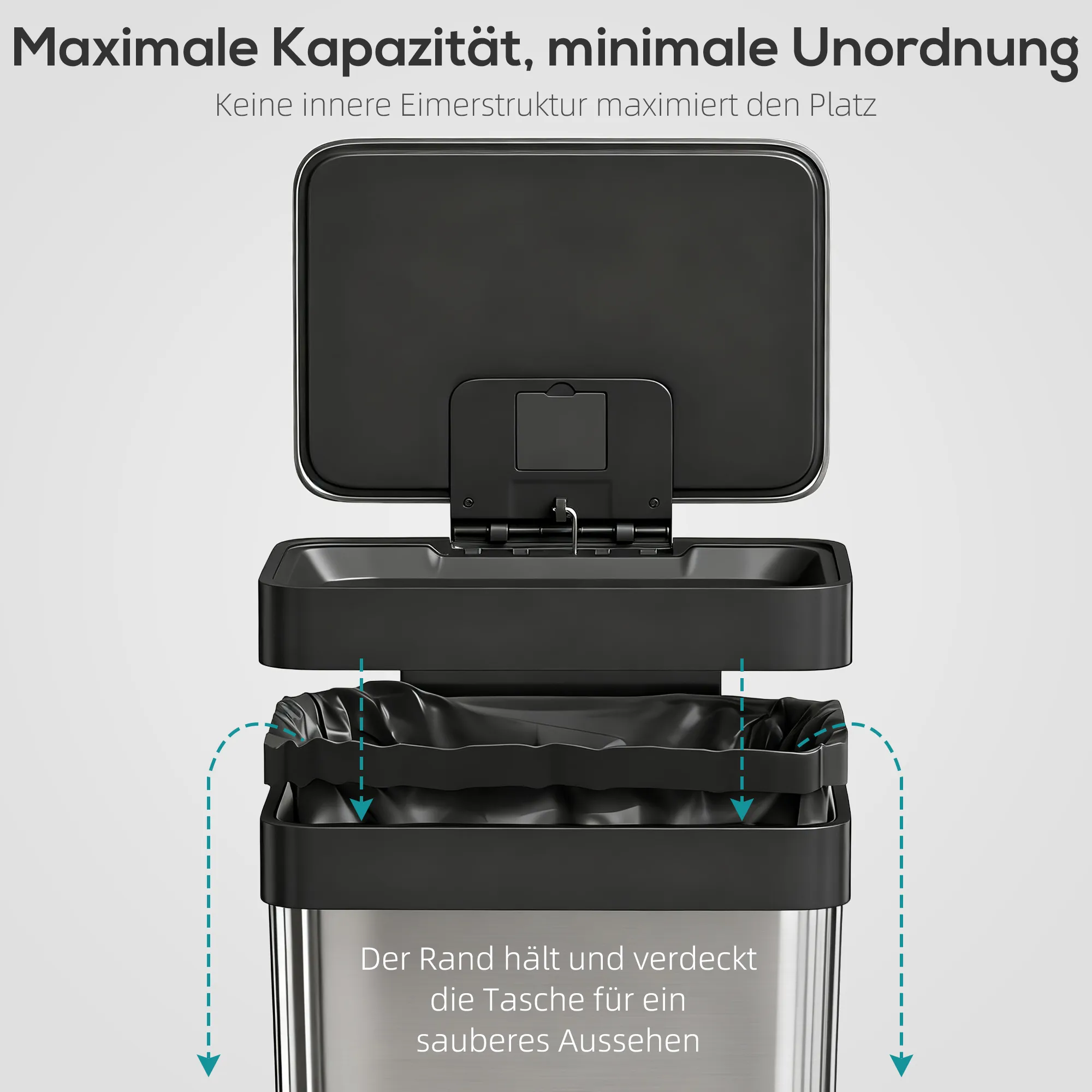 - Het ontwerp zonder binnenbak maximaliseert de capaciteit en vereenvoudigt het schoonmaken van de prullenbak enorm