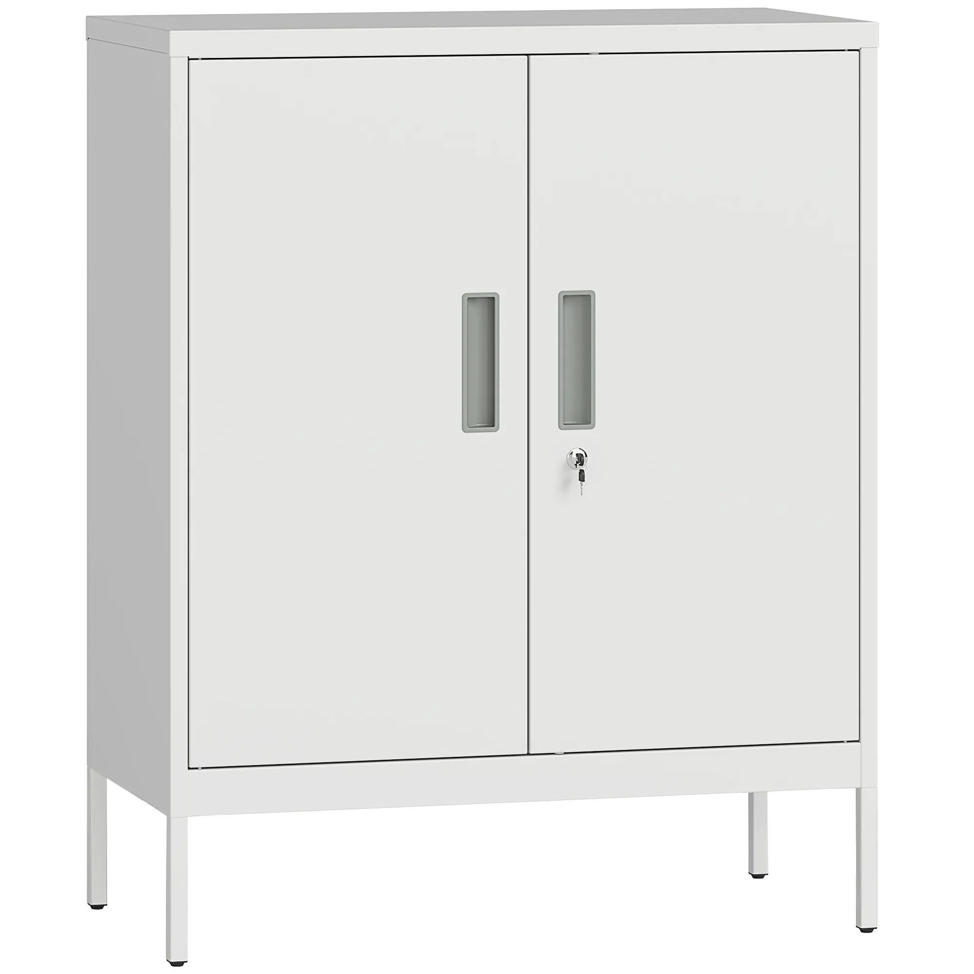 TRUUSK Afsluitbare Stalen Kast met 2 Deuren – Verstelbare Planken – Voor Thuiskantoor en Garage – Wit