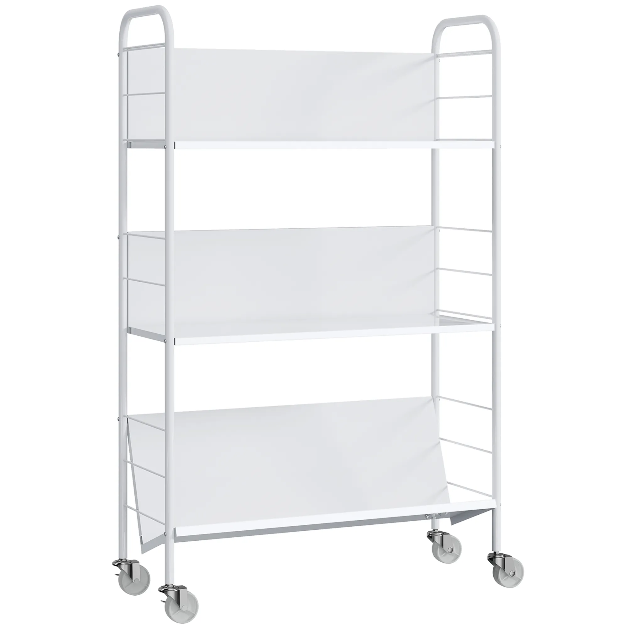 TRUUSK Boekenkast Opbergrek – 3 Niveaus – Op Wielen – Speelgoedrek – 69 x 26 x 108 cm – Wit