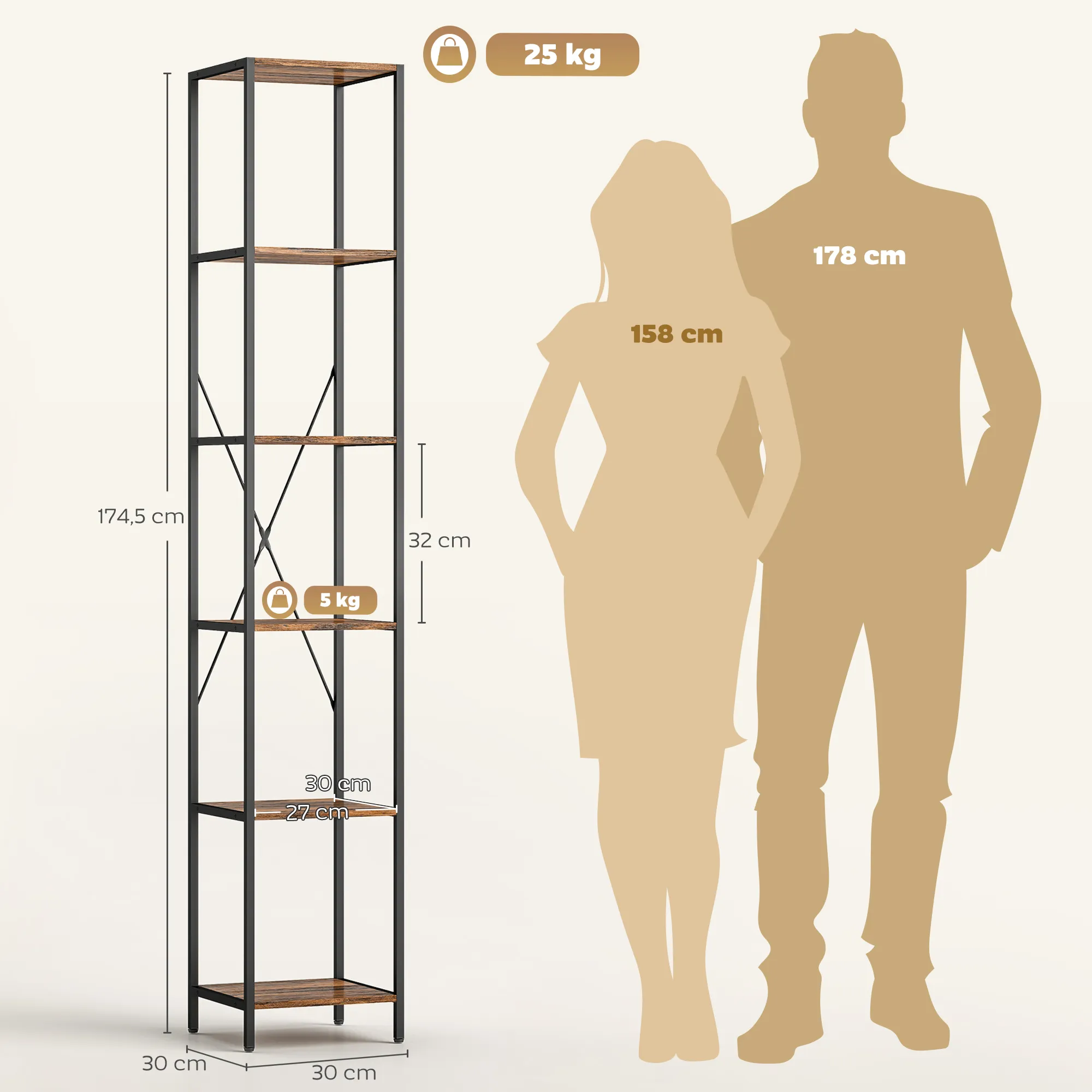 • Afmetingen totaal: 30 x 30 x 174,5 cm (BxDxH)