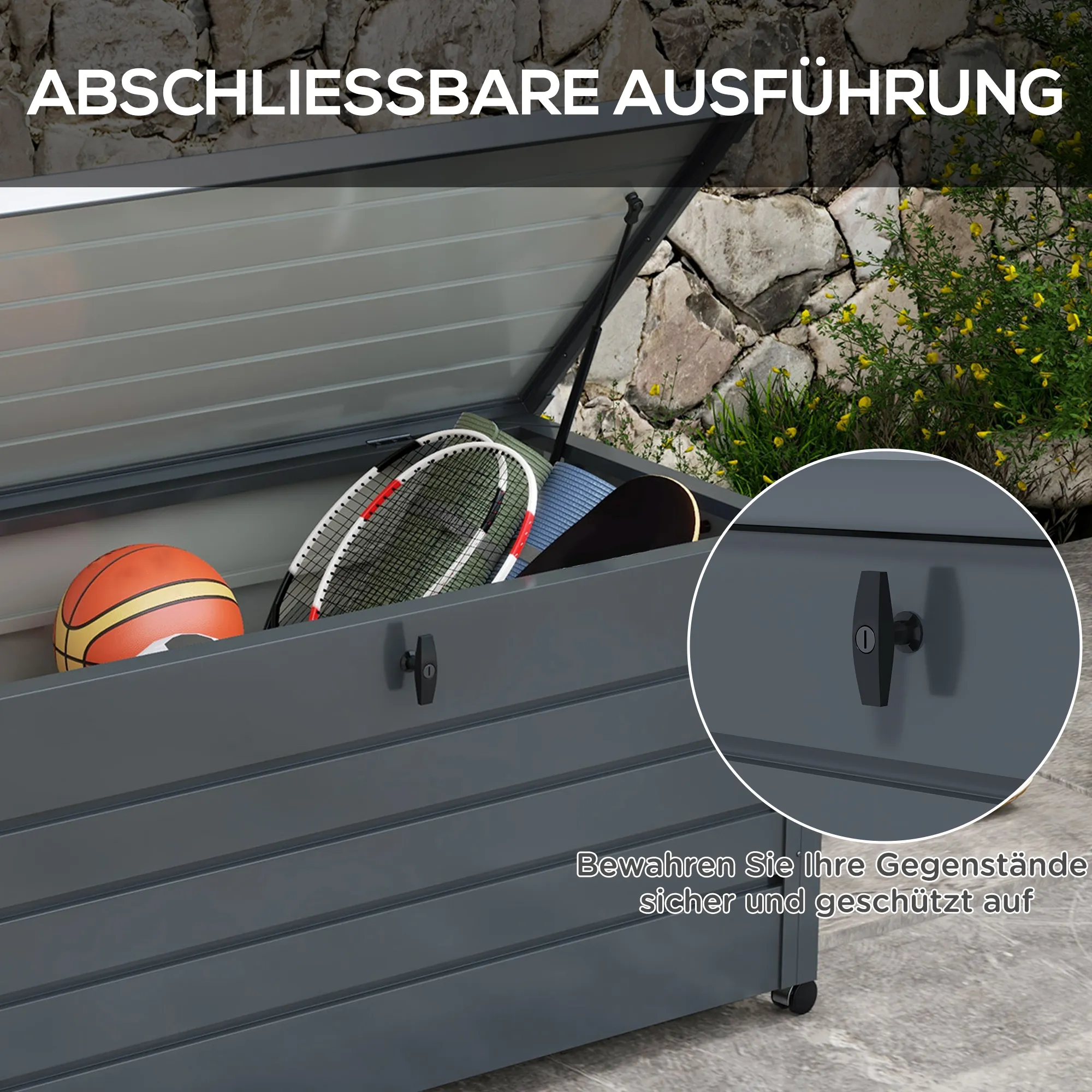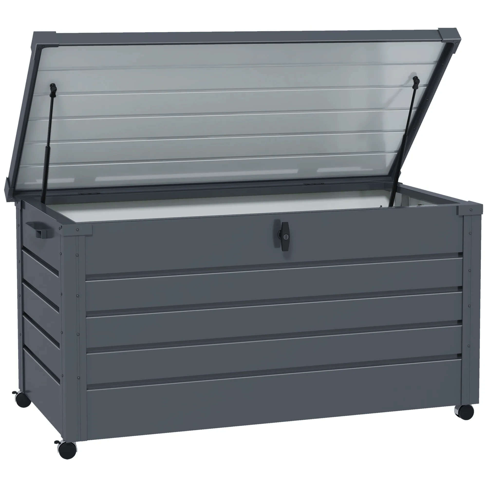 De [BRAND NAME] waterdichte opbergbox is dé oplossing voor al jouw opslagbehoeften in de tuin. Met een indrukwekkende capaciteit van 311 liter biedt deze opbergbox voldoende ruimte voor al je tuingereedschap, gereedschap en meer. Gemaakt van stevig gegalvaniseerd staal, is deze tuinopbergbox robuust en bestand tegen alle weersomstandigheden. Het gemakkelijk te openen deksel maakt het opbergen eenvoudig, terwijl de twee handvatten en wielen zorgen voor moeiteloos verplaatsen, zelfs wanneer de box volgeladen is.