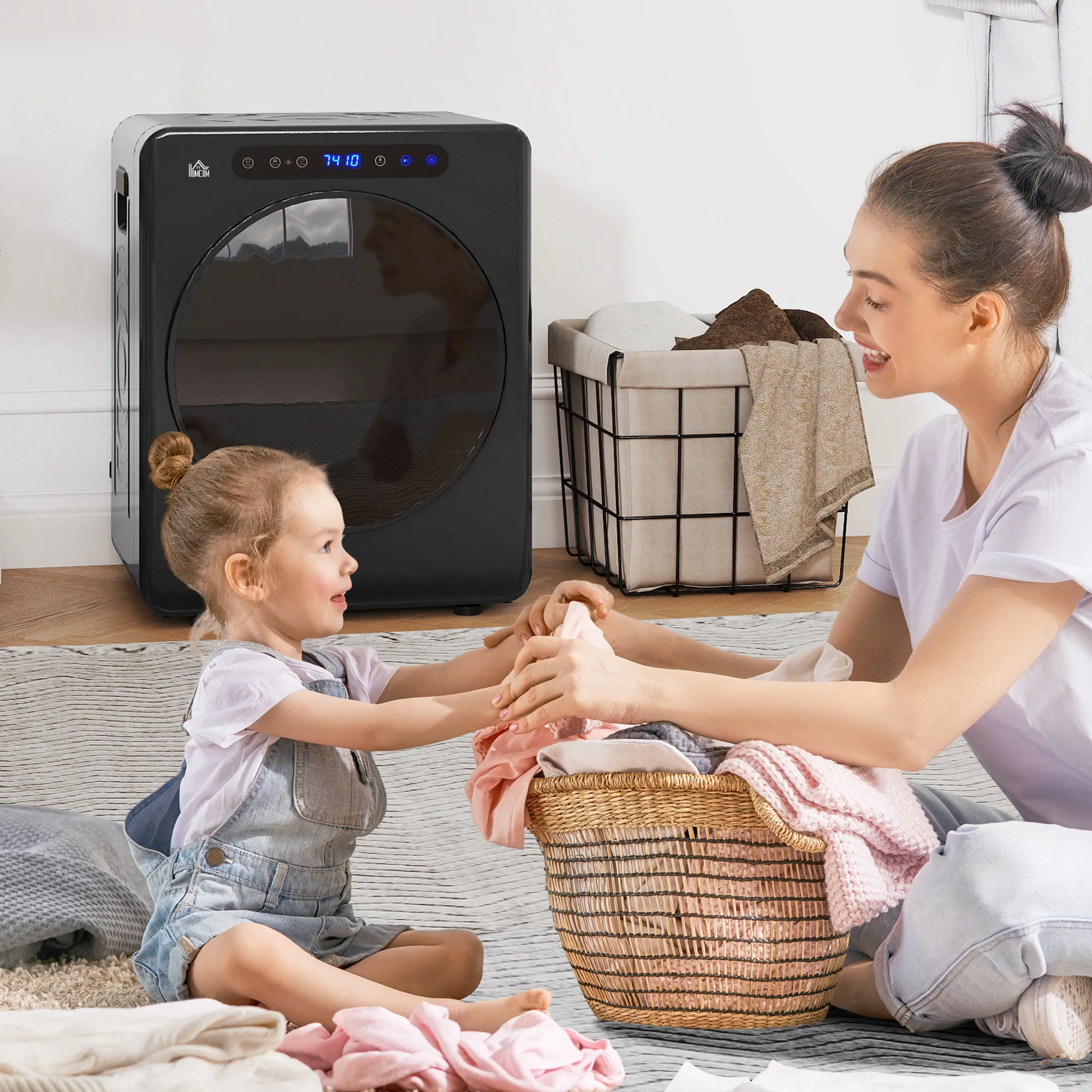 De compacte TRUUSK wasdroger met een krachtige 1000W motor is perfect voor kleine ruimtes. Met een droogcapaciteit van 4 kg en instelbare temperaturen tussen 40-60℃ zorgt deze mini-droger ervoor dat je kleding zachtjes en efficiënt droogt. De droger heeft handige functies zoals extra droog en intelligente automatische aanpassing voor optimale resultaten. Je kunt hem vrijstaand plaatsen of aan de muur bevestigen.