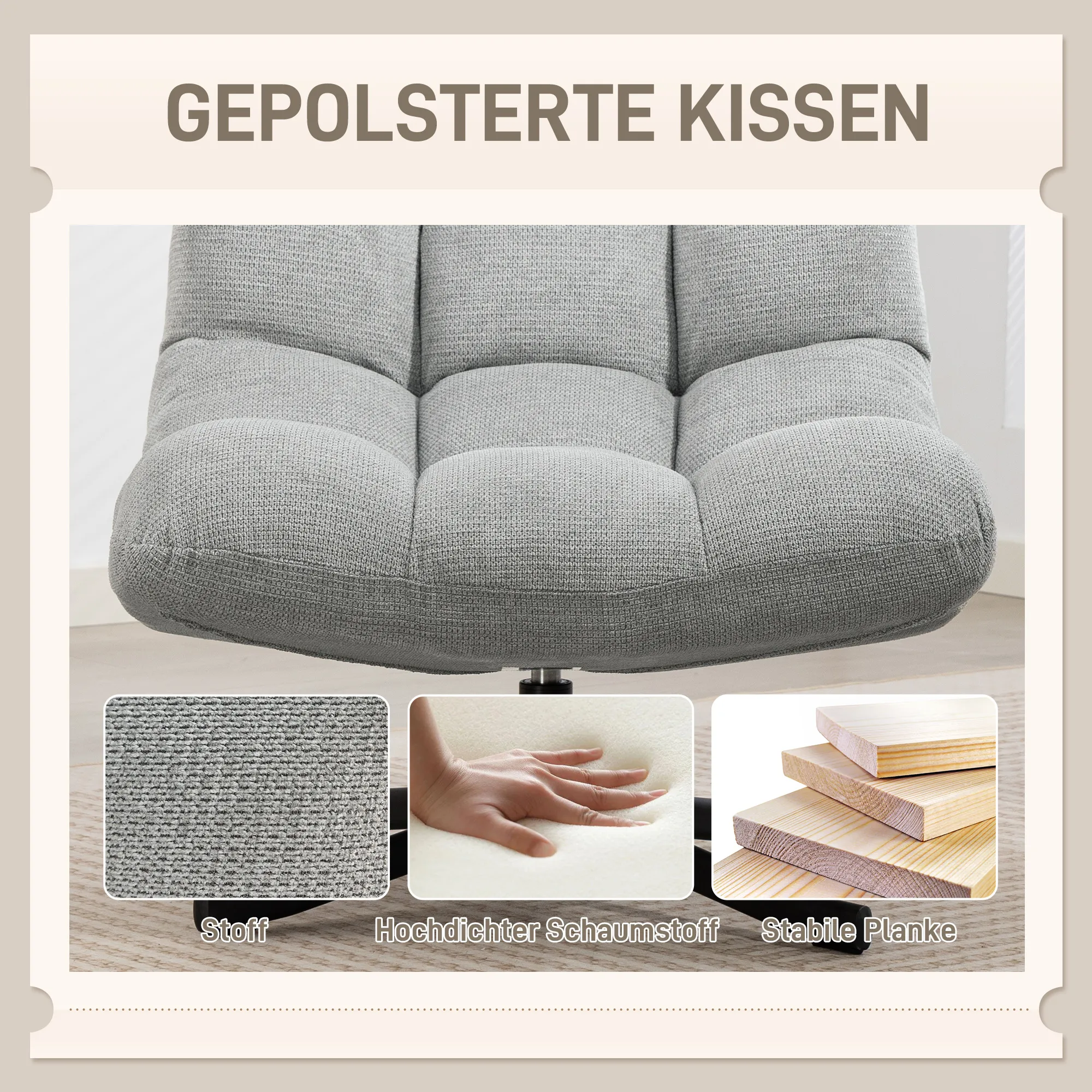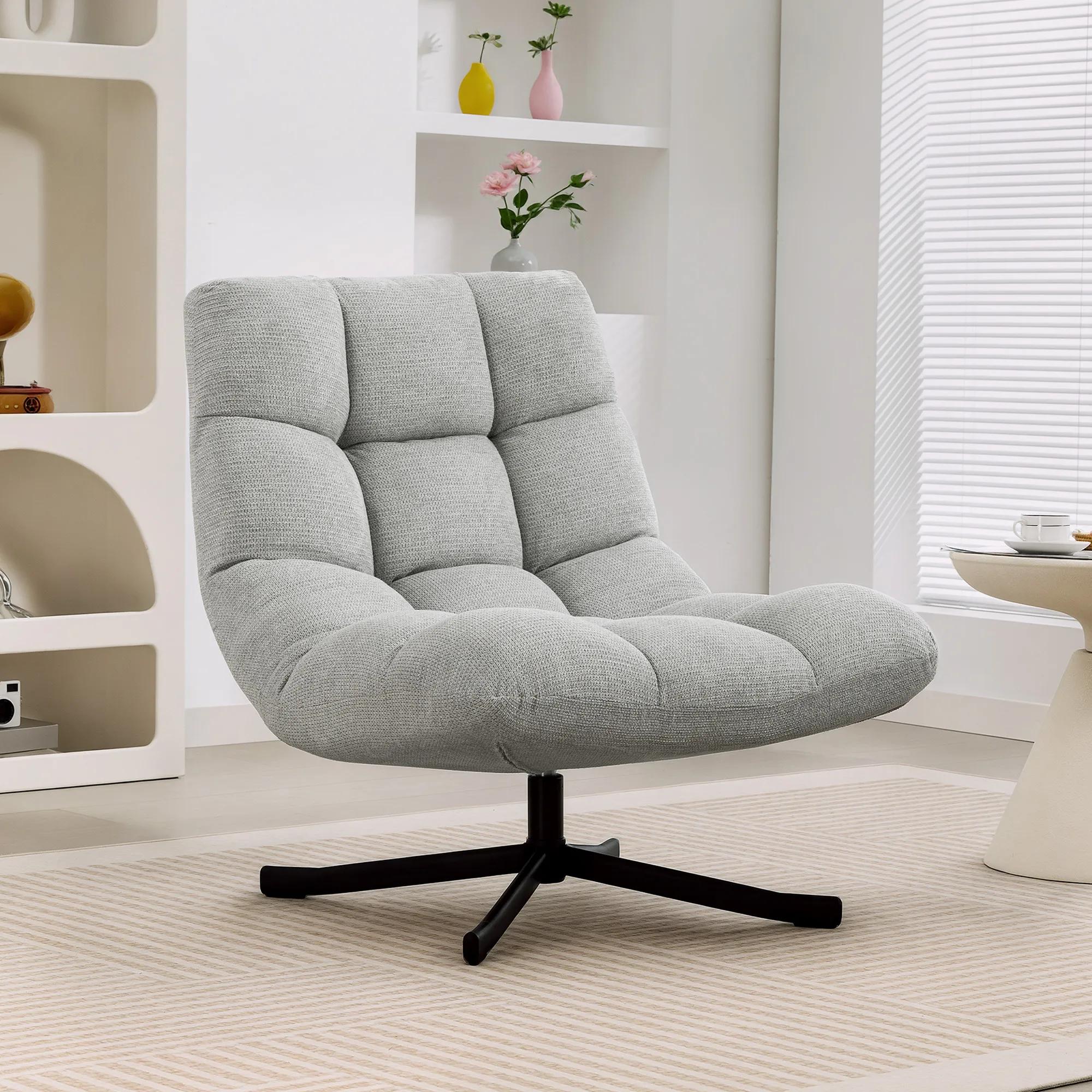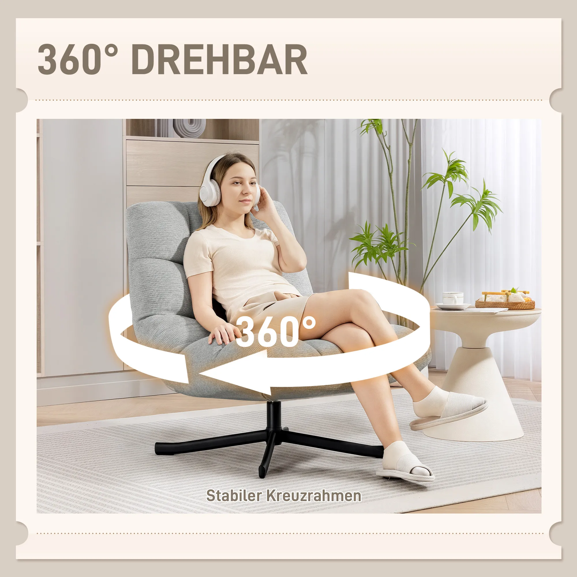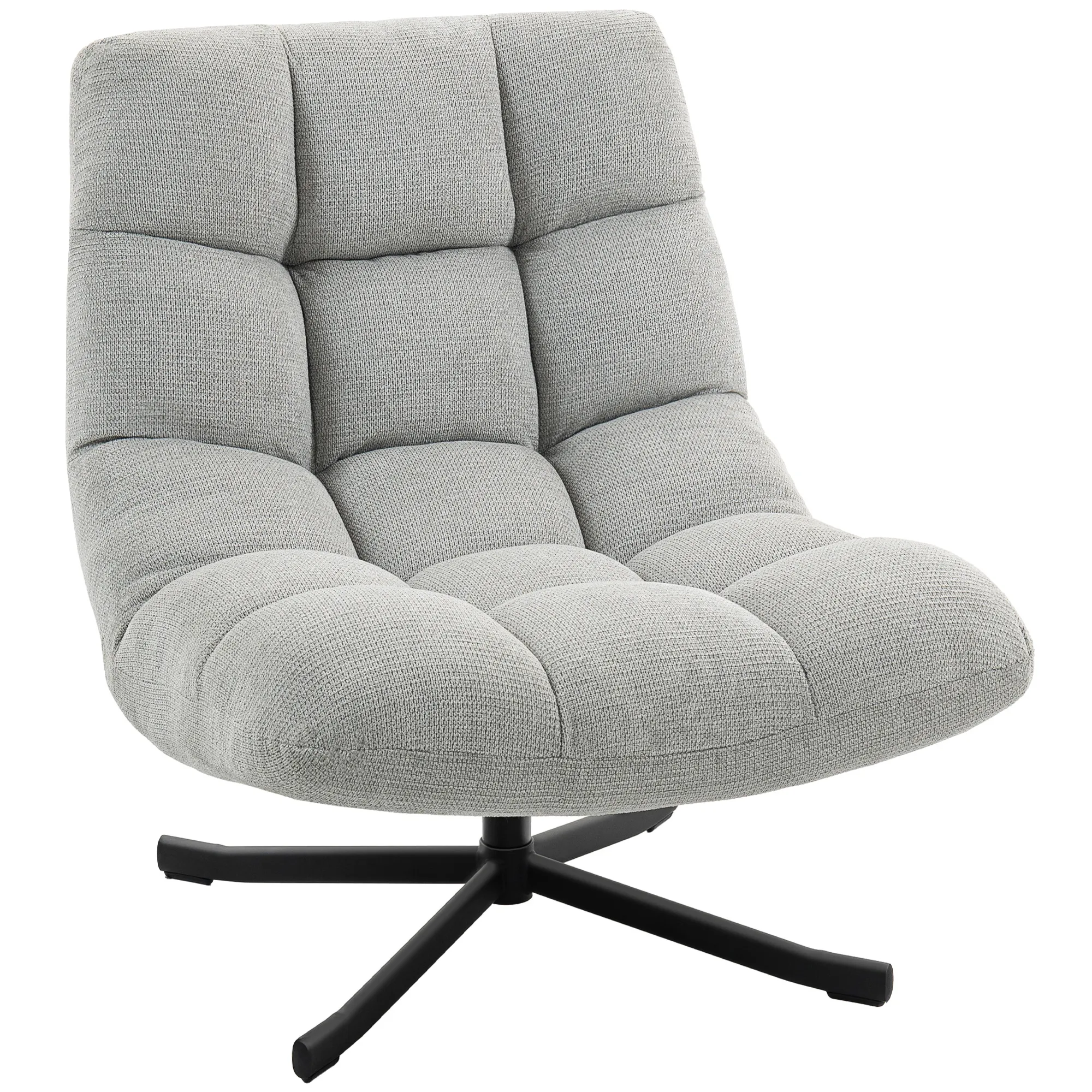 TRUUSK Draaibare Loungestoel – Brede Zitoppervlakte – Waterafstotende Chenille-look – Gekruiste Stalen Poten – Lichtgrijs