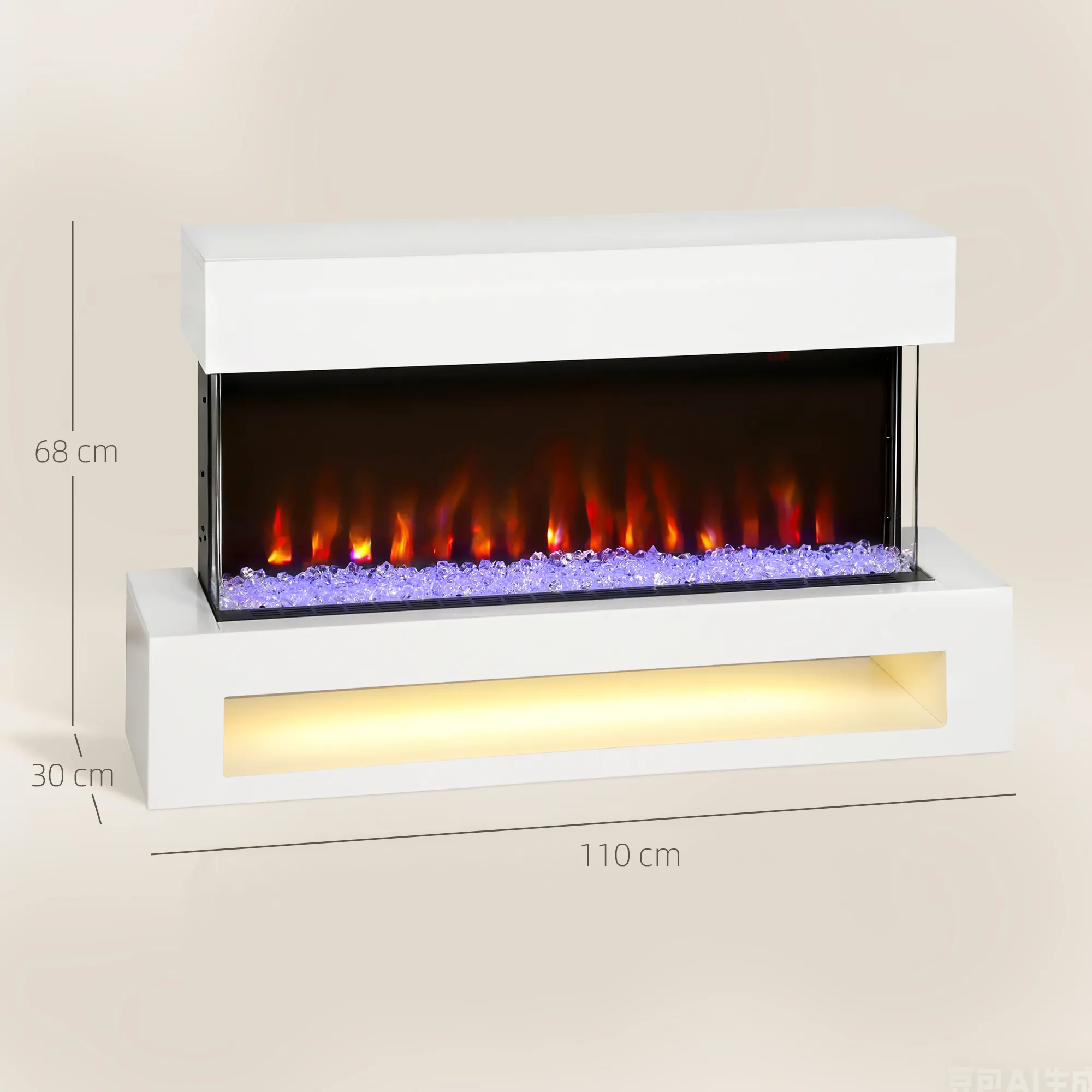 - Veelzijdigheid: verwarmingsfunctie met 1000W of 2000W en thermostaat (15–30 °C), 11 vlamkleuren, 10 kristalbedopties