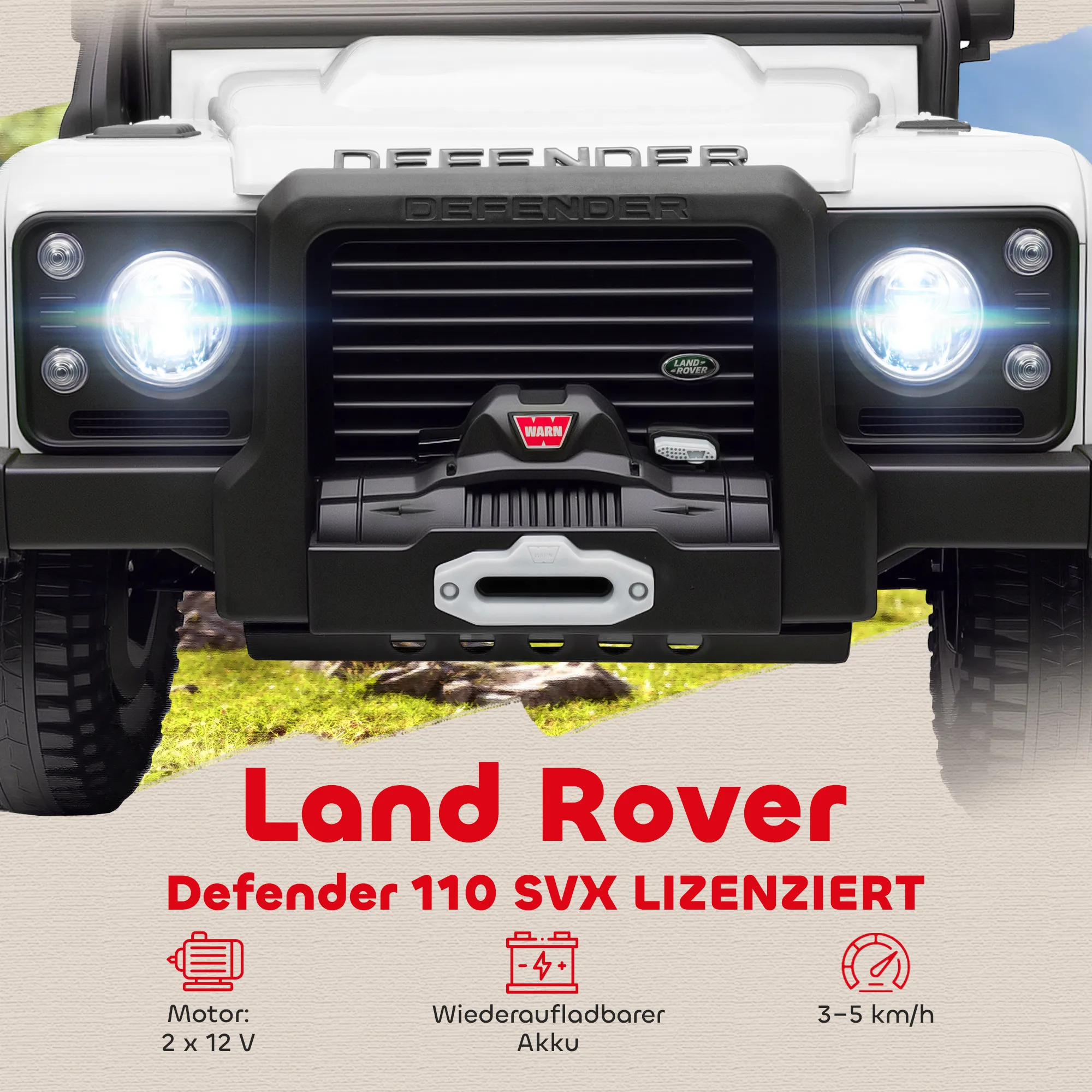 Laat jouw kinderen genieten van een realistische en veilige rijervaring met de Land Rover Defender 110 SVX kinder-elektrische auto. Bestel hem vandaag nog!