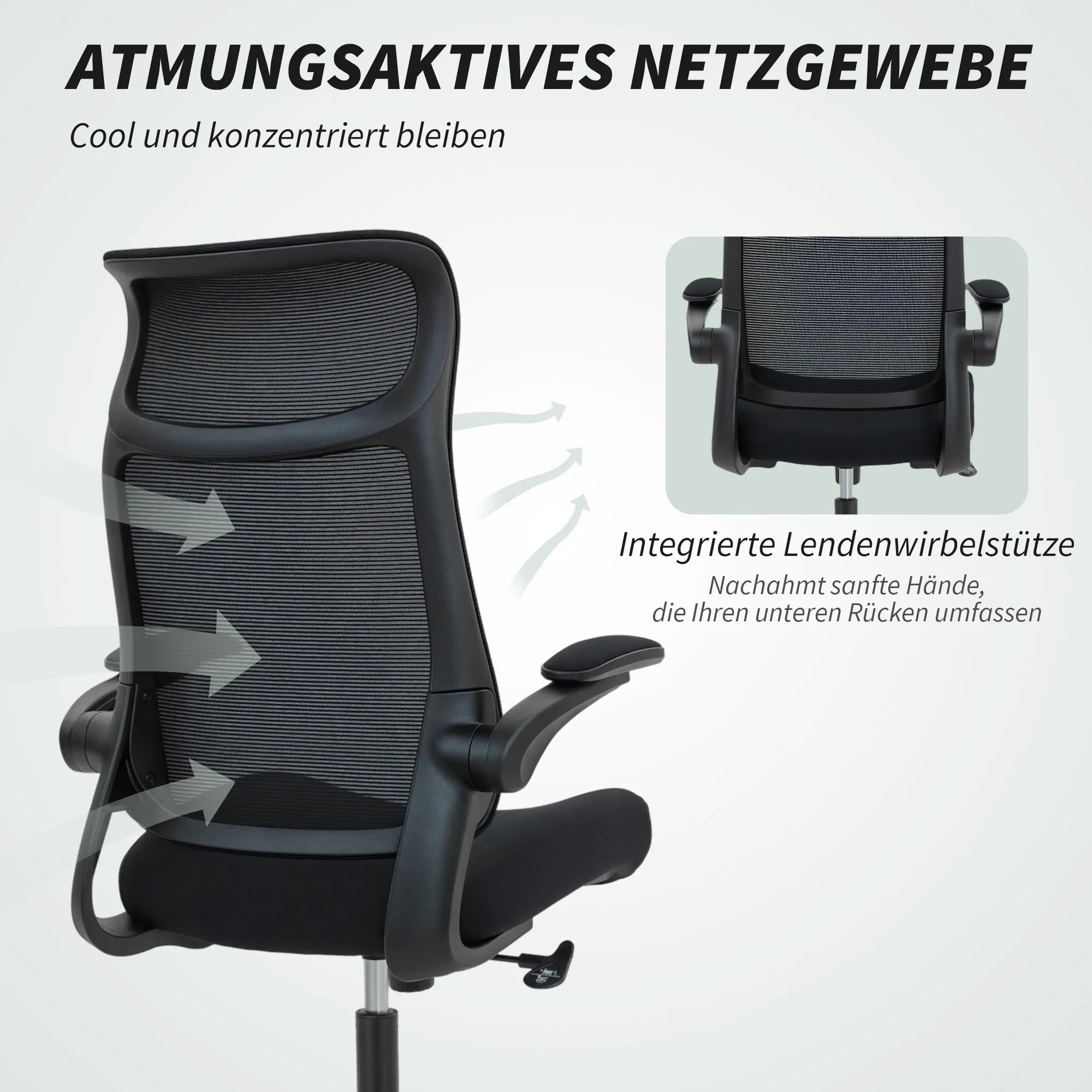 TRUUSK Ergonomische Bureaustoel – 3D-armleuningen – Netstof Rugleuning – S-vormige Rugleuning – Hoofdsteun – Kantelfunctie – Zwart