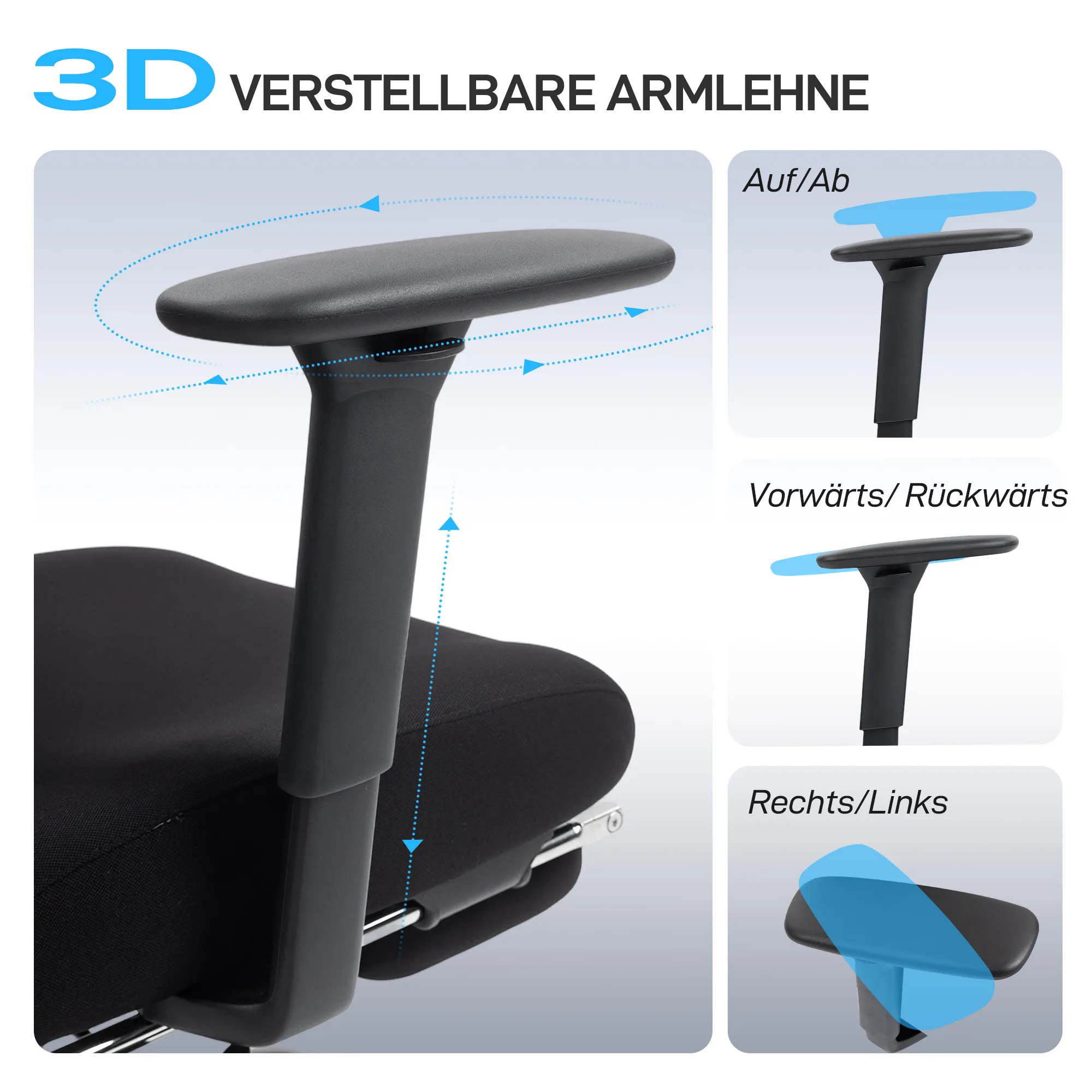 • Personalisatie: 3D-armleuningen, verstelbaar hoofdsteun en hoogteverstelling voor individueel comfort