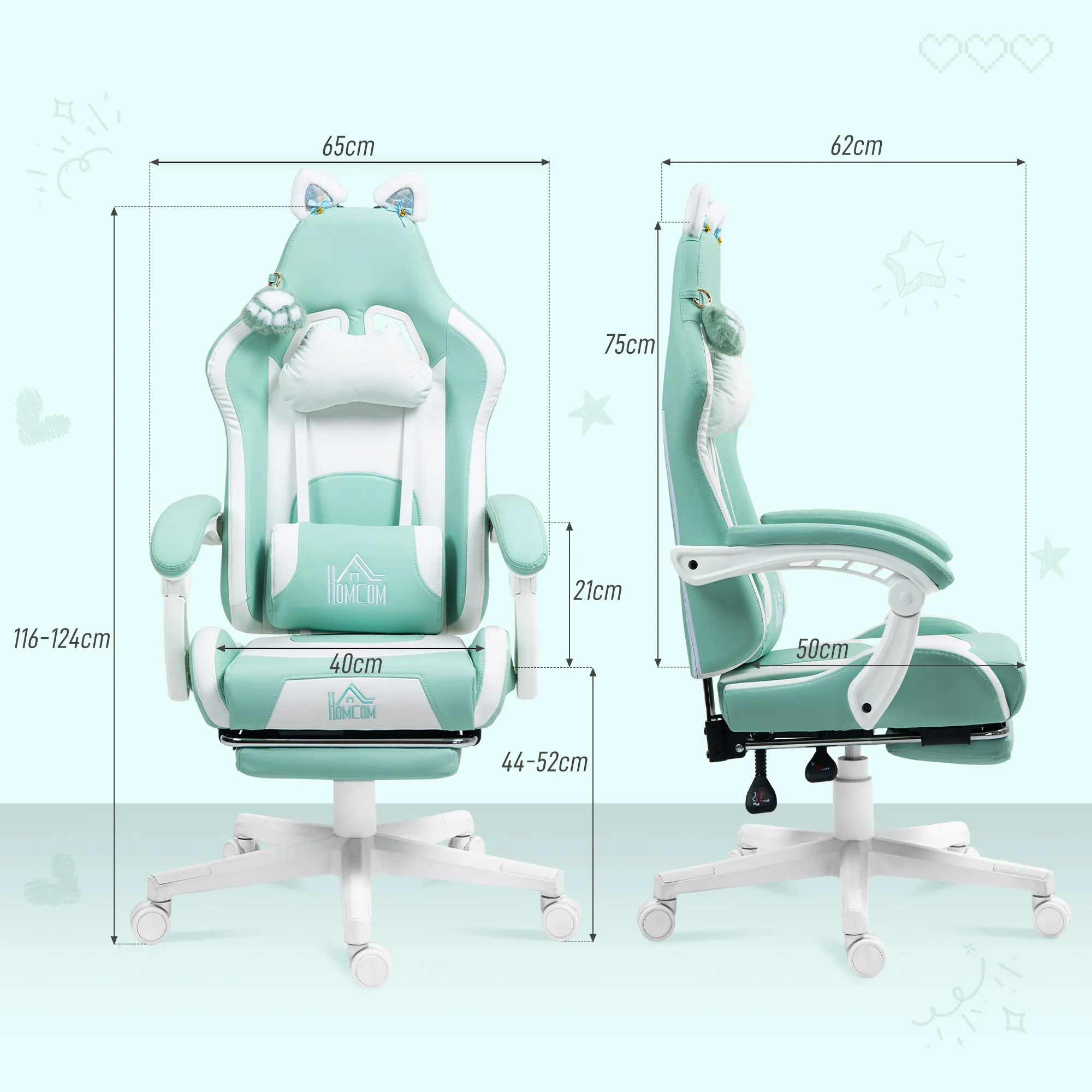 Verbeter je game-ervaring met de TRUUSK gamingstoel met voetensteun. De schattige kattenoren en poten geven jouw setup een speelse touch. Geniet van de optimale vulling, omhuld met gemakkelijk te reinigen kunstleer. Pas de zithoogte aan van 44 tot 52 cm en leun tot 135° achterover voor maximaal comfort tijdens lange speelsessies.