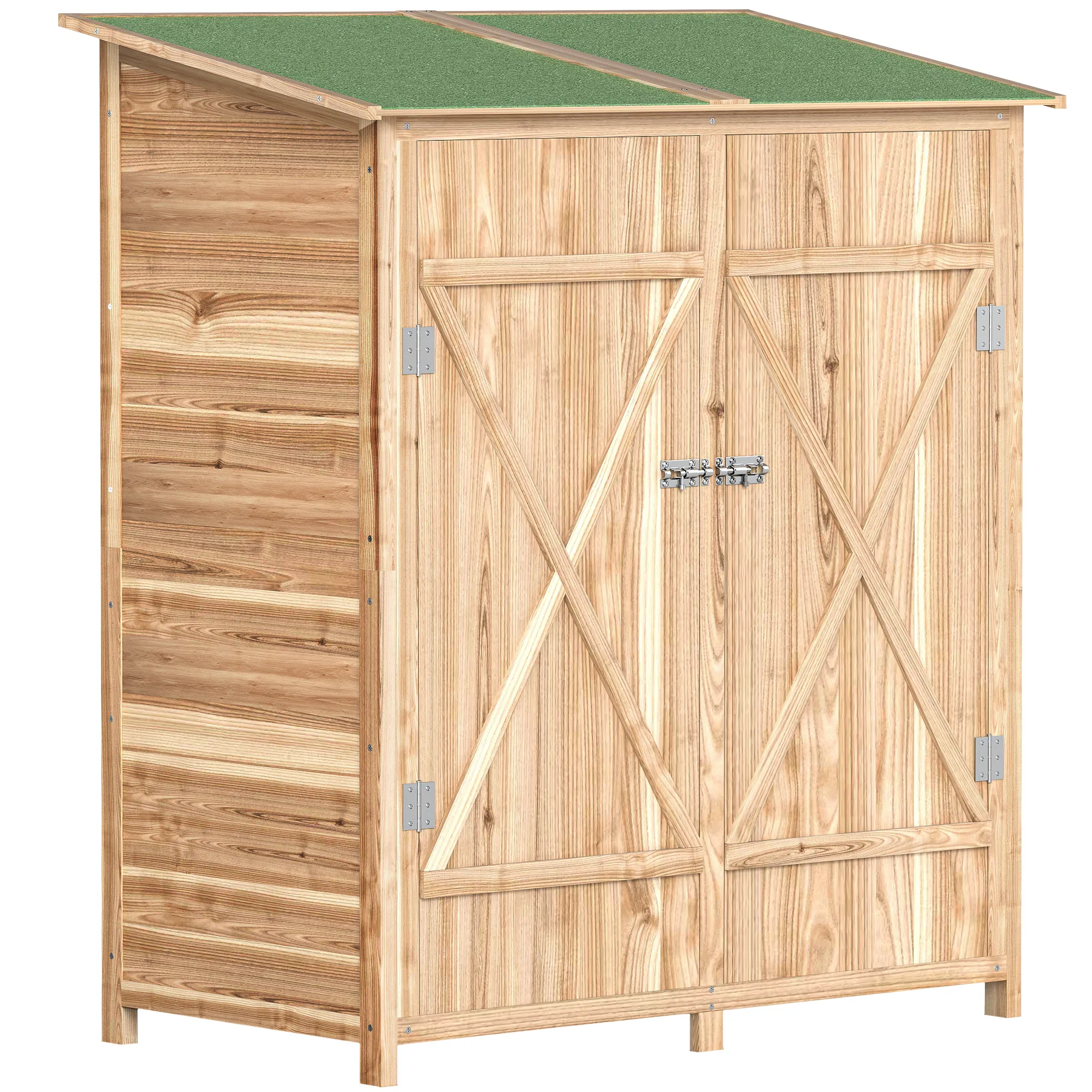 De weerbestendige tuinkast van TRUUSK is de ideale opbergplaats voor al jouw tuingereedschap en accessoires. Dankzij het rustieke ontwerp past deze kast perfect in elke tuin. De stevige constructie van gelakt sparrenhout is waterafstotend en bestand tegen alle weersomstandigheden. De tuinkast wordt geleverd met een handige tuintafel die ook als kruk kan dienen. Zo blijft jouw tuingereedschap veilig en droog opgeborgen, beschermd tegen wind en weer.