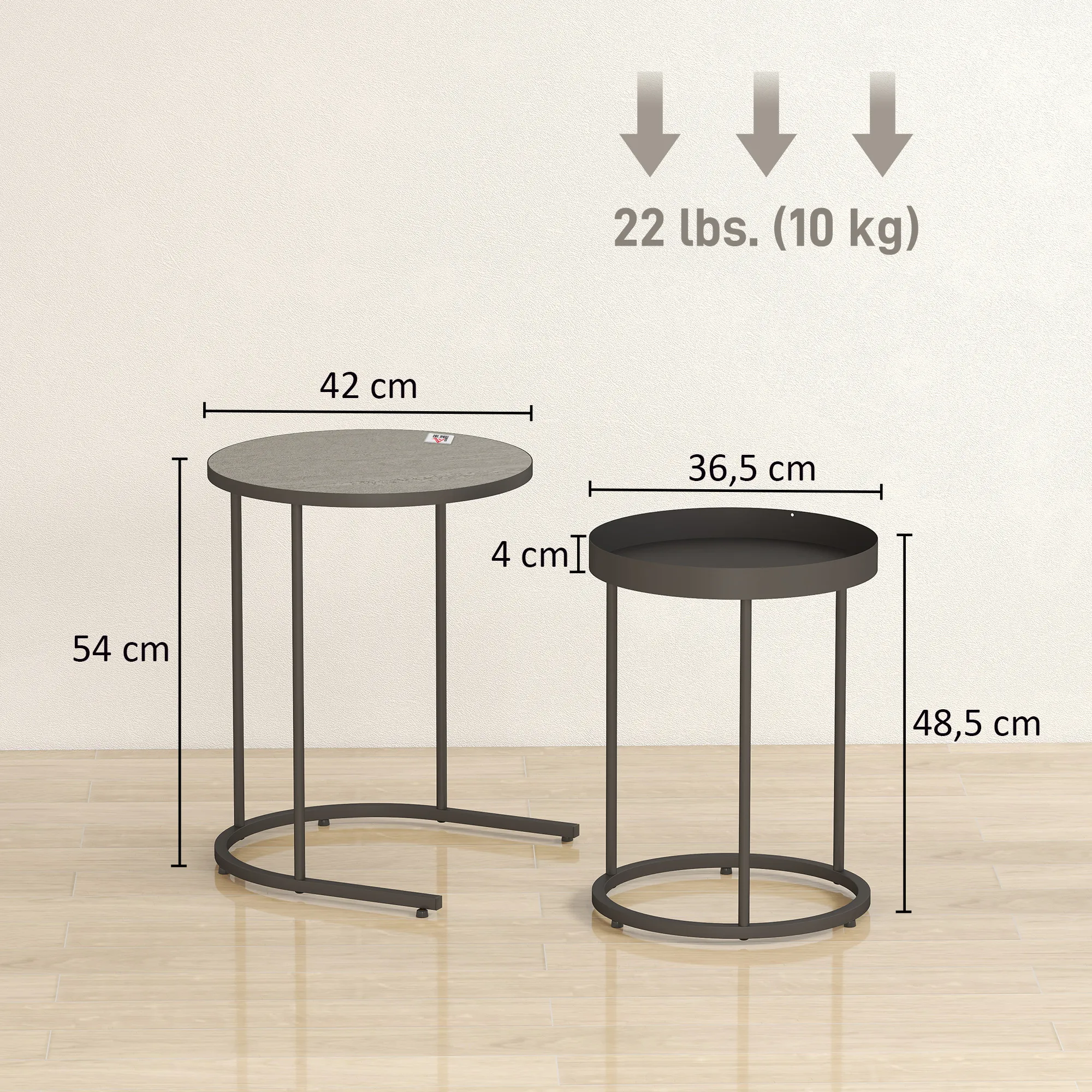 TRUUSK Inschuifbare Salontafels – 2-delige Set met Dienbladontwerp – Metaal – Grijs