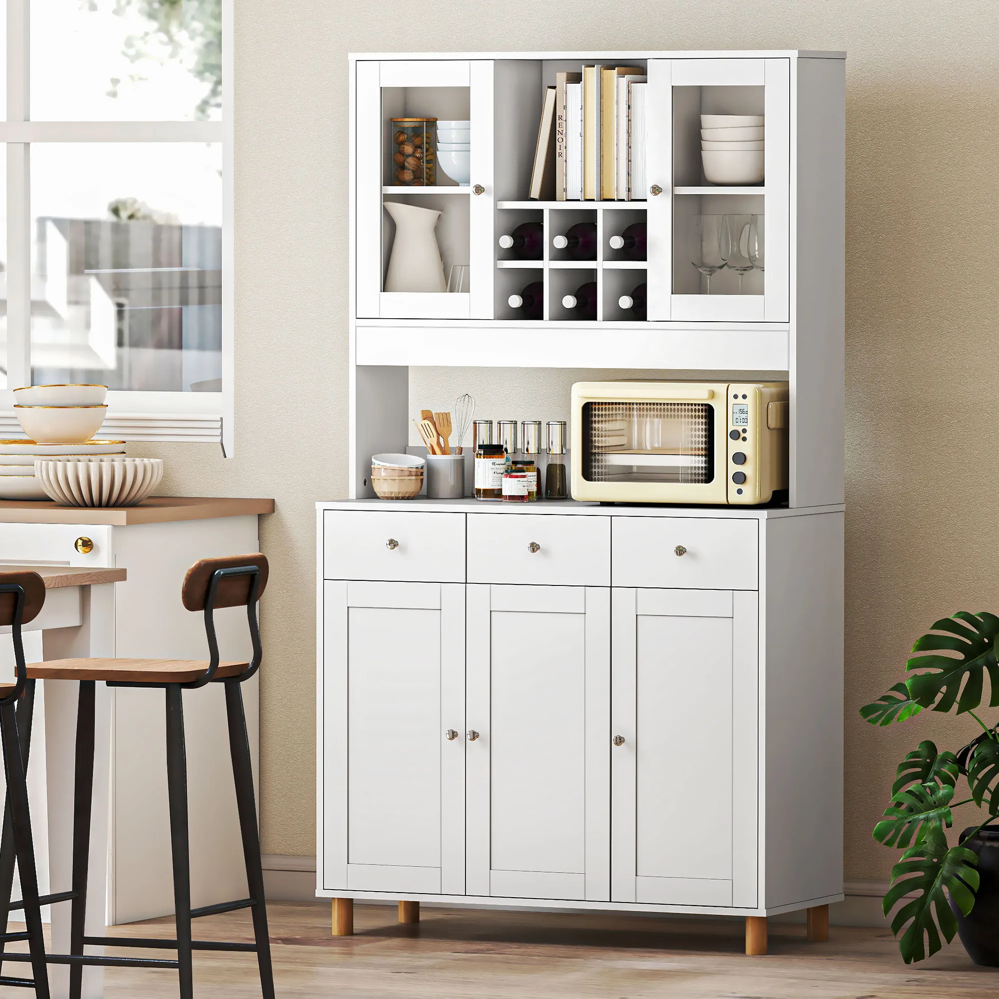 Wil jij ook af van rommelige werkbladen en chaos die je rust verstoren? Stel je een perfect georganiseerde keuken voor met de [BRAND NAME] keukenkast: jouw eigen koffie- en wijnbar voor ontspannen ochtenden en rustgevende avonden. De glazen deuren laten je favorieten zien, terwijl de onderkasten de chaos verbergen. Deze elegante hoge kast maakt je dagelijkse routine stressvrij en voegt functionaliteit en stijlvolle charme toe aan je huis.