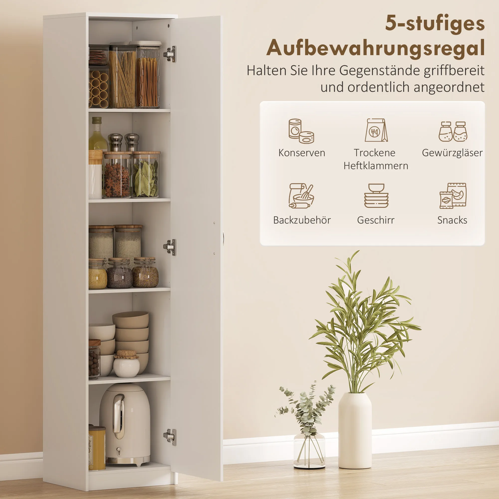 TRUUSK Keukenkast – 5-laags Opbergkast – Verstelbare Planken – Voor Woonkamer en Keuken – Hout – Wit