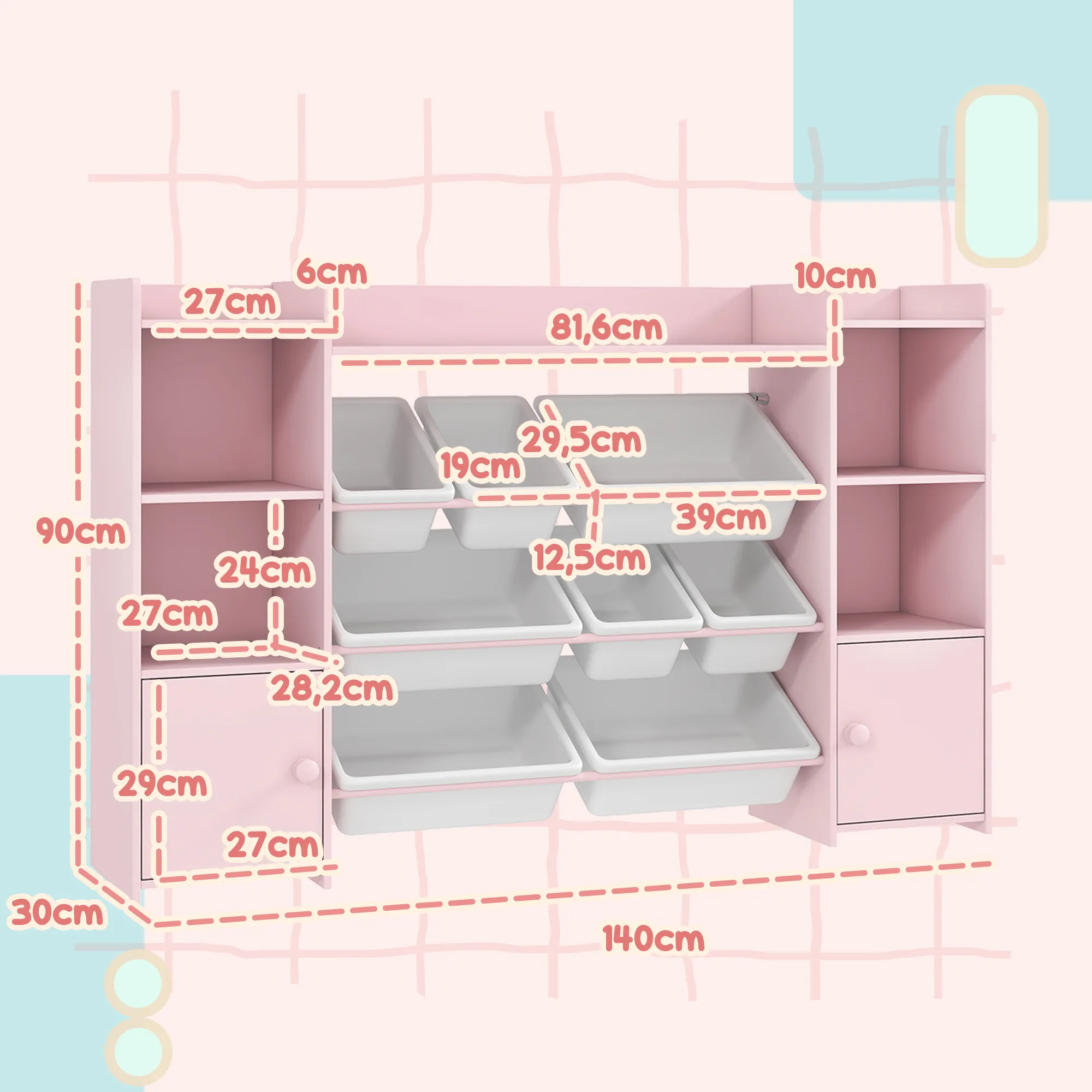 TRUUSK Kinderopbergrek – Voor Speelgoed en Boeken – Overzichtelijk Opruimen – 8 Uitneembare Dozen – Roze