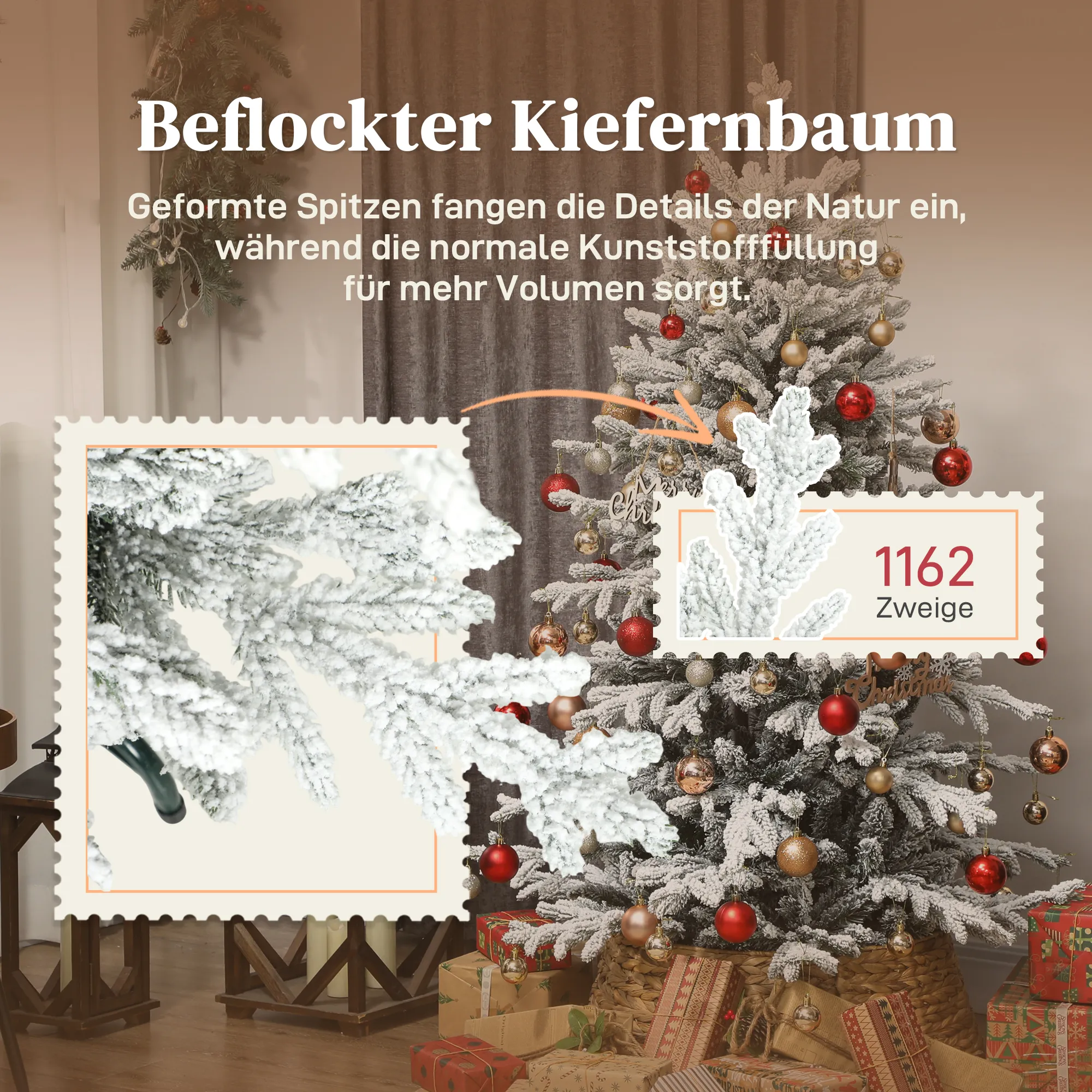 TRUUSK Kunstmatige Kerstboom 150cm – Met Sneeuw – 1162 Takken – Inklapbare Metalen Standaard