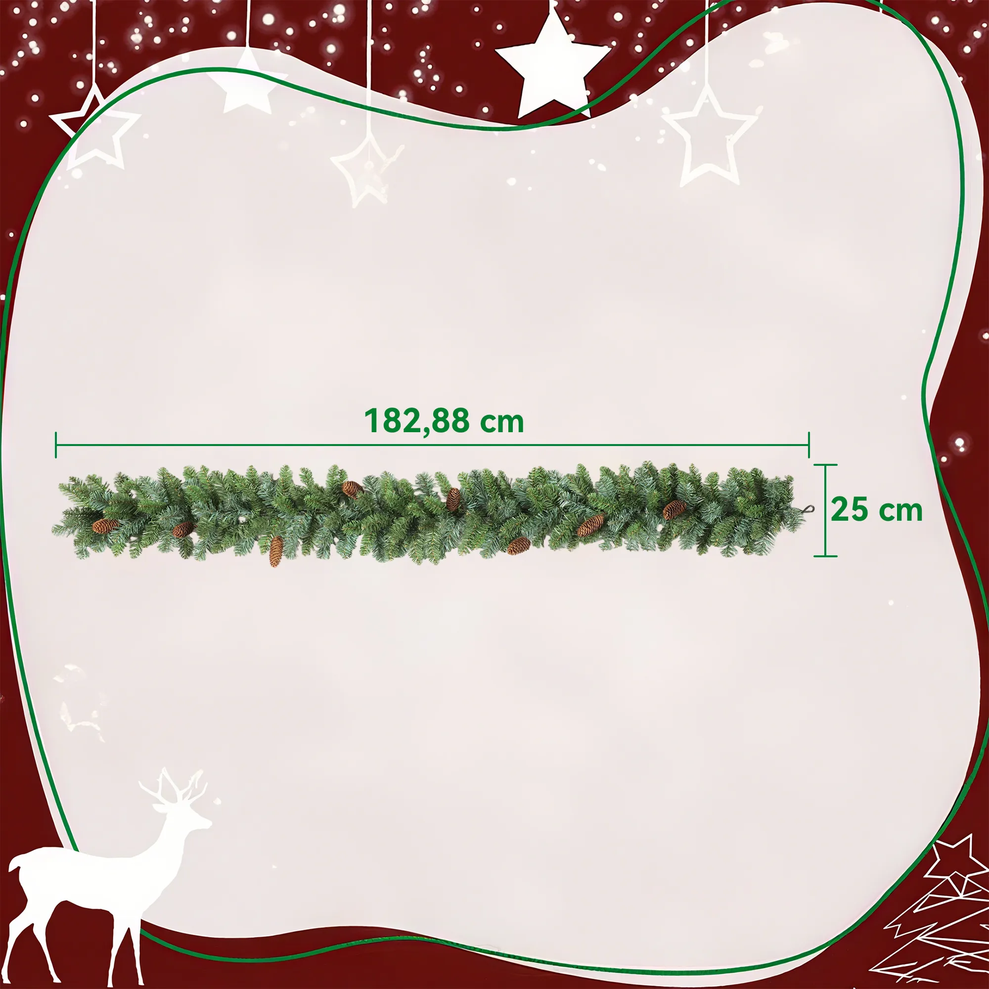 TRUUSK Kunstmatige Kerstkrans – 1,8 Meter – 162 Punten – 8 Dennenappels – Groen – Feestelijke Bloemdecoratie