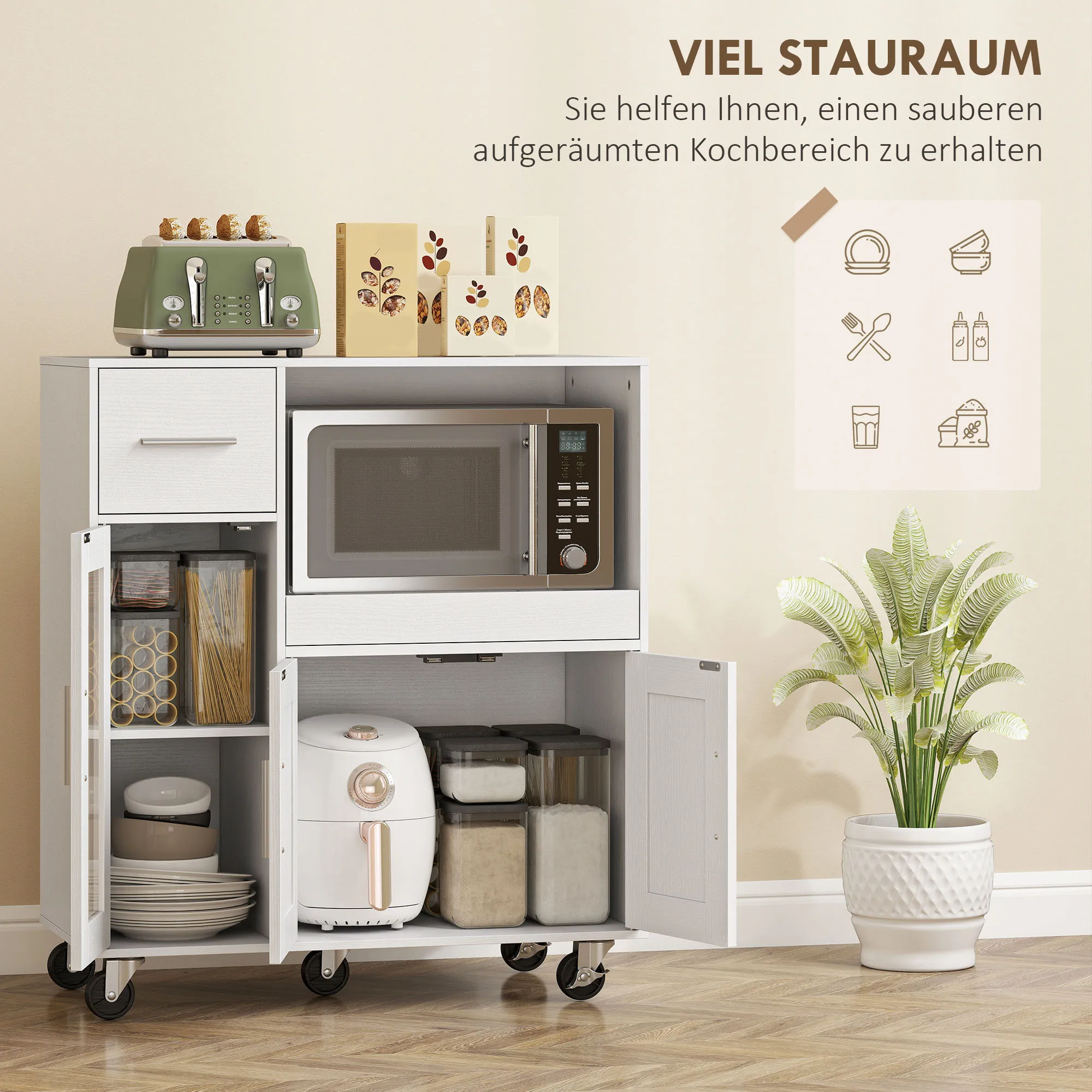 - Veel opbergruimte: een lade, twee kasten en een ruim oppervlak voor al je keukenspullen